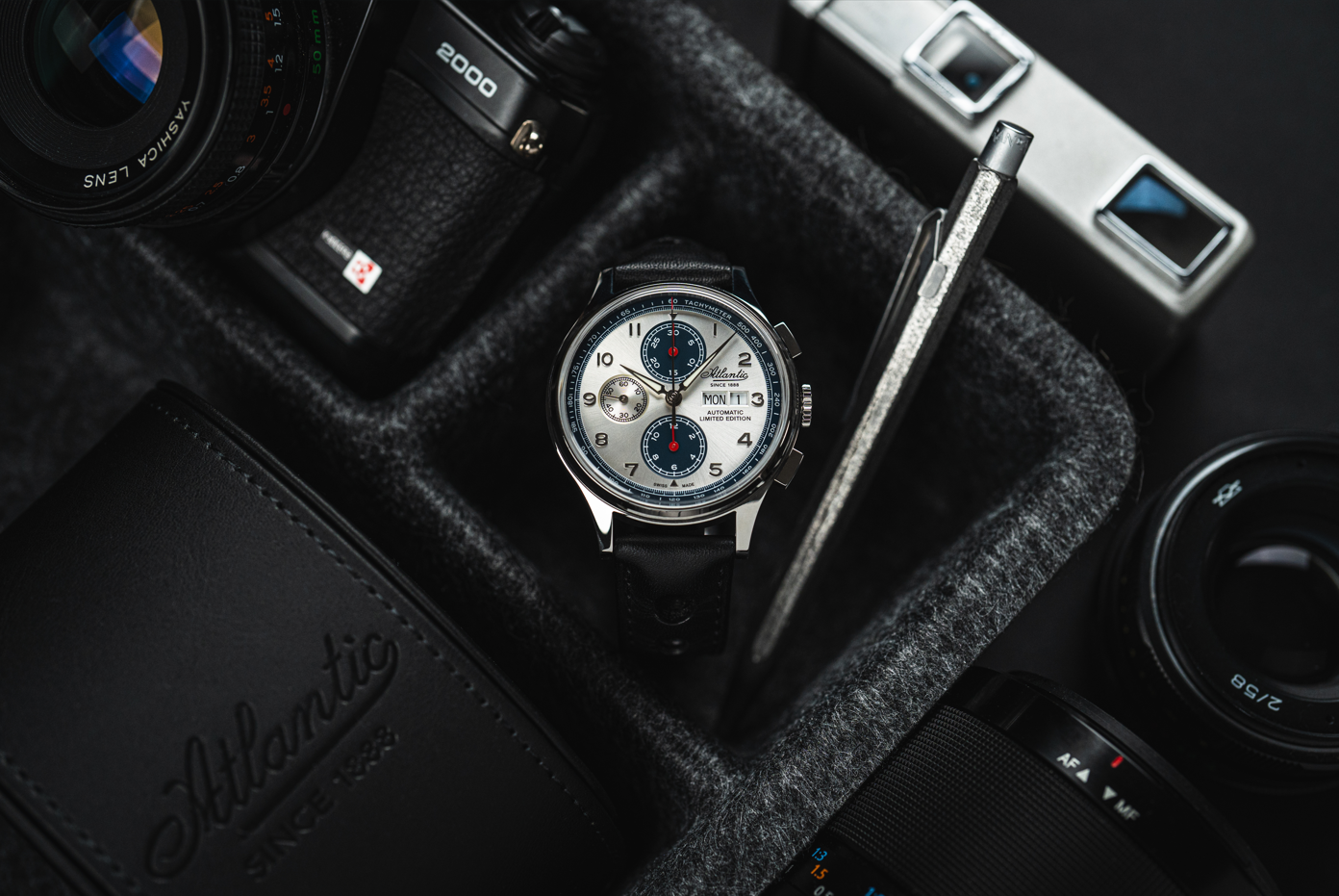 Zur Store-Eröffnung am 22.11. zeigen wir ein einmaliges Atlantic-Einzelstück: einen Worldmaster Chronographen mit Valjoux 7750, gesponsert von Atlantic. Dieses Unikat wird zugunsten des Vereins für krebskranke und chronisch kranke Kinder Darmstadt / Rhein-Main-Neckar e. V. versteigert.