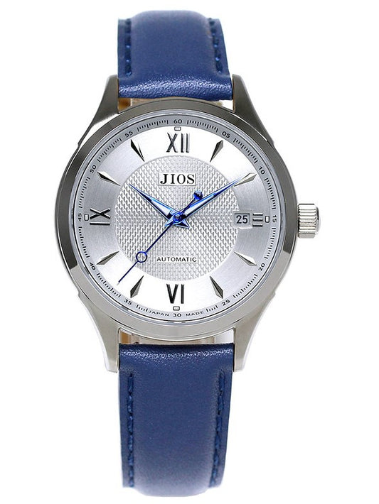 JIOS „SEIRAN“ - Silbernes Zifferblatt x blaue Zeiger x blaues Leder