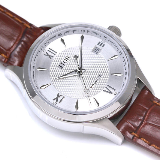 JIOS „SEIRAN“ - Silbernes Zifferblatt x silberne Zeiger x braunes Leder