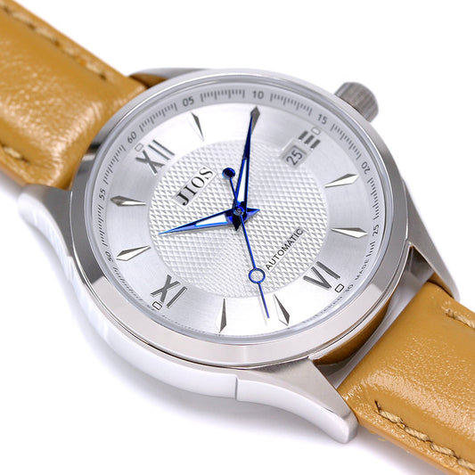 JIOS „SEIRAN“ - Silbernes Zifferblatt x blaue Zeiger x Camel Leder