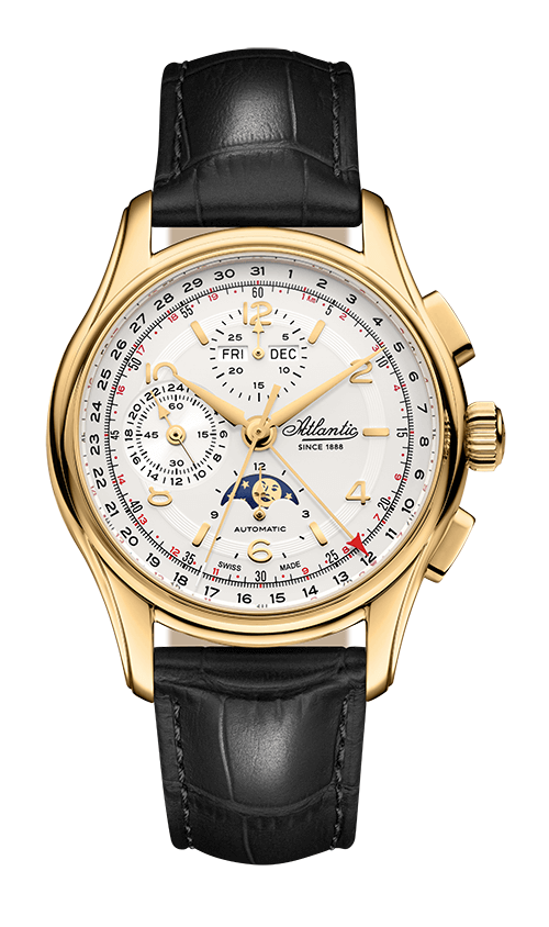 Atlantic Worldmaster 1888 Automatik-Chronograph mit Mondphase Gelbgold | Limitierte Auflage mit goldenem Uhrwerk