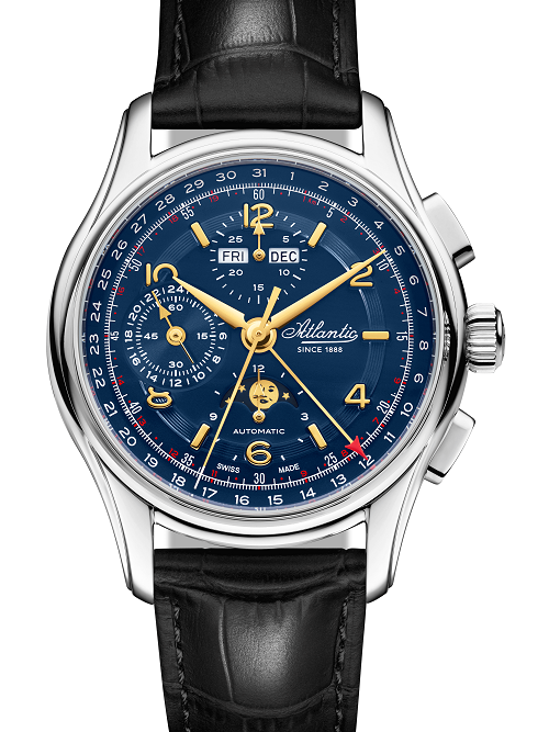 Atlantic Worldmaster 1888 Automatic Moonphase Chronograph Blau | Limited Edition mit goldenem Uhrwerk
