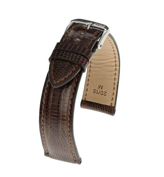 RIOS1931 Echt-Teju-Eidechsenleder-Uhrenarmband (Mokka) - 18mm - Länge M