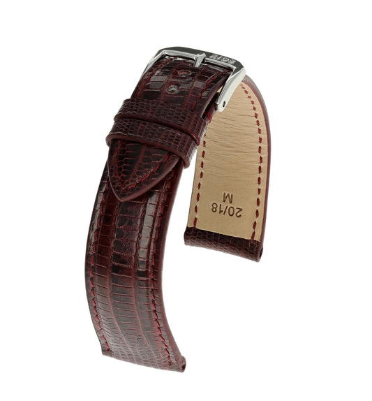 RIOS1931 Echt-Teju-Eidechsenleder-Uhrenarmband (Bordeaux) - 20mm - Länge M