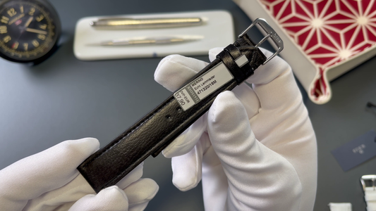 RIOS1931 Echt Juchtenleder Uhrenarmband Tula - Lederunterlage Schwarz - goldene Schließe