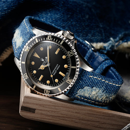 Outline Navy Diver with riveted steel bracelet + crushed denim strap (special set) Limited Edition