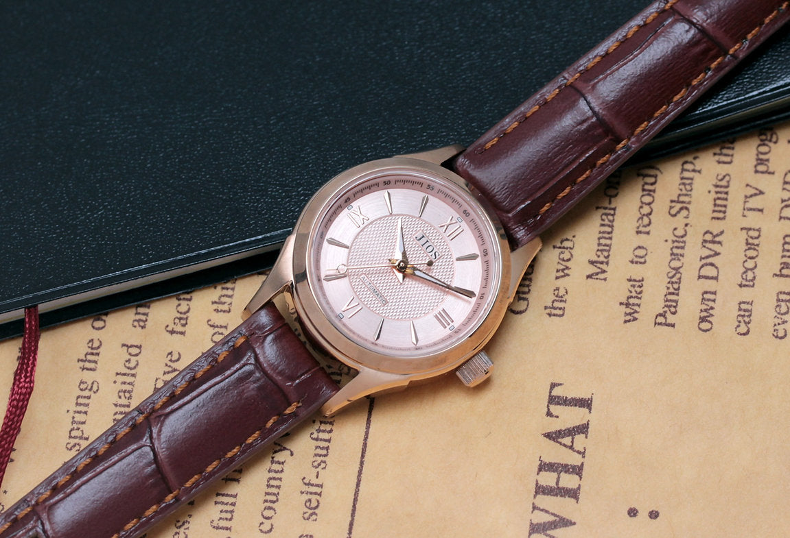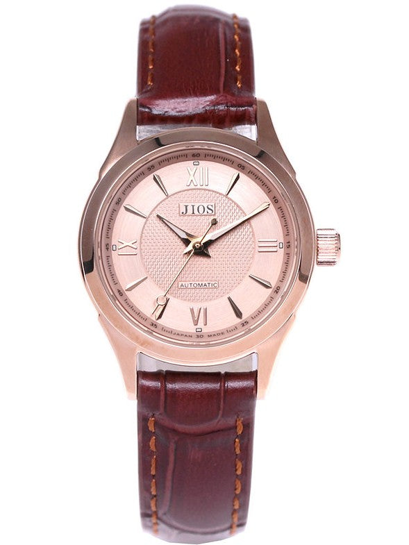 JIOS AWAZU „Biwa-Salmon“ x Roségold-Gehäuse & Zeiger x braunes Leder