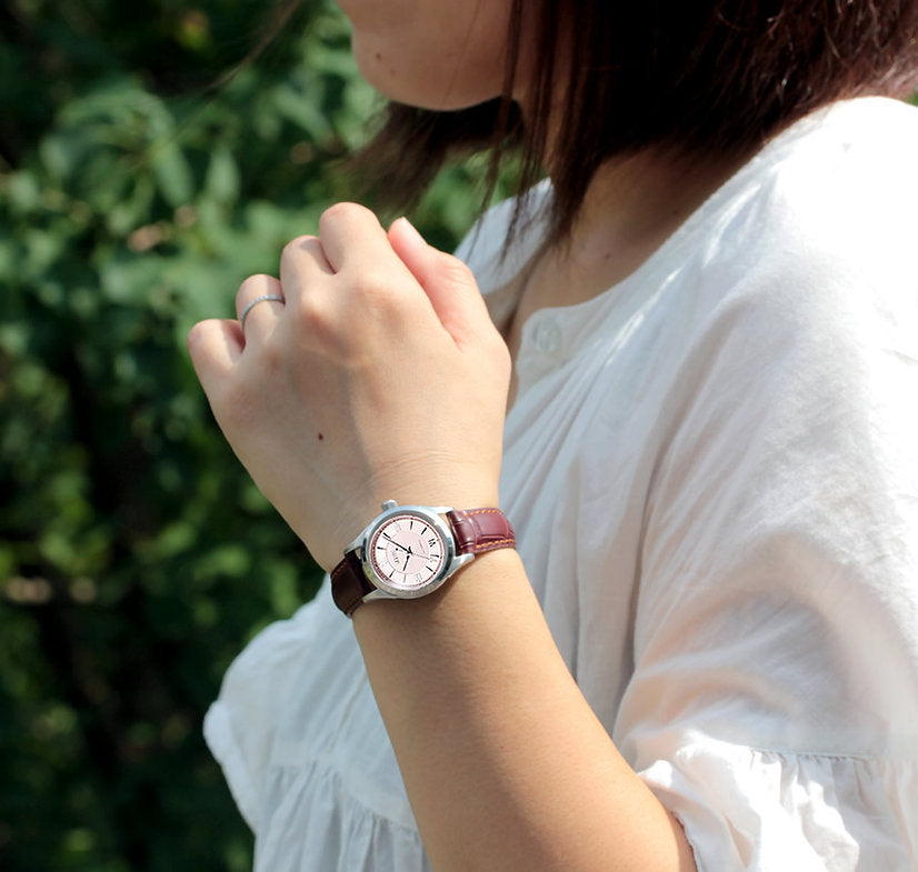 JIOS AWAZU „Biwa-Salmon“ x silberne Zeiger x braunes Leder