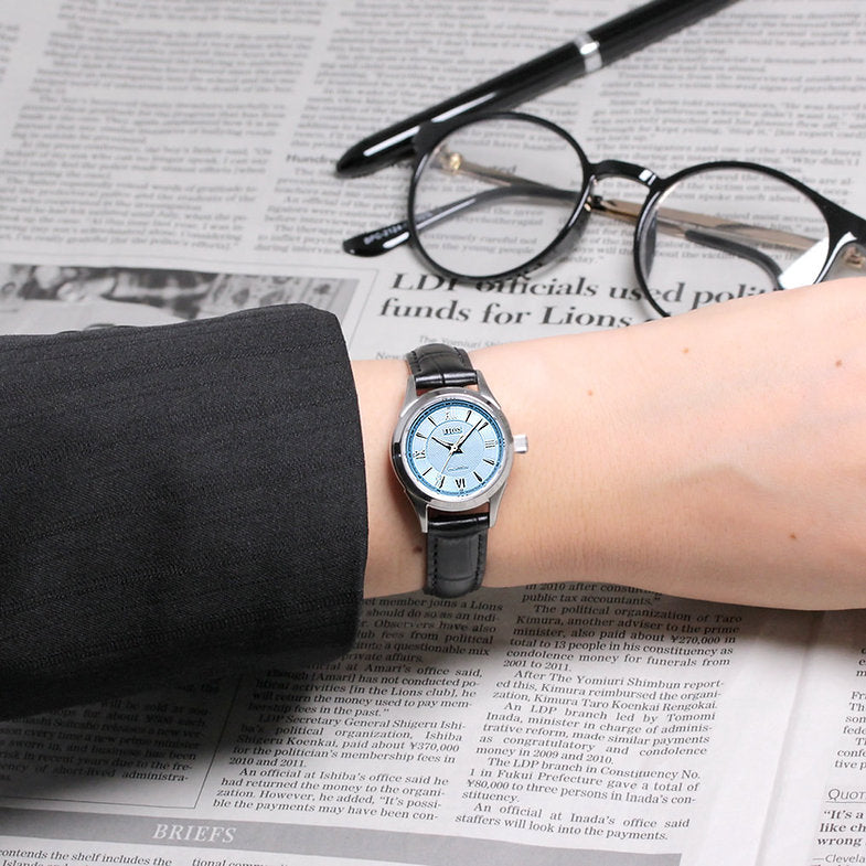 Die AWAZU „Biwaco Blue“ greift die ruhigen, tiefen Blautöne des Biwa-Sees auf und übersetzt sie in ein besonders ausgewogenes, klassisches Zifferblattdesign. Als Schwestermodell der 38 mm großen SEIRAN ist sie ideal als Damenmodell geeignet – und zugleich perfekt als stimmiges Paarmodell in zwei Größen. Das fein guillochierte blaue Zifferblatt harmoniert hervorragend mit dem silberfarbenen Edelstahlgehäuse und den silbernen Zeigern. Die römischen Ziffern verleihen der Uhr eine klassische Note mit hoher Wiedererkennbarkeit.
