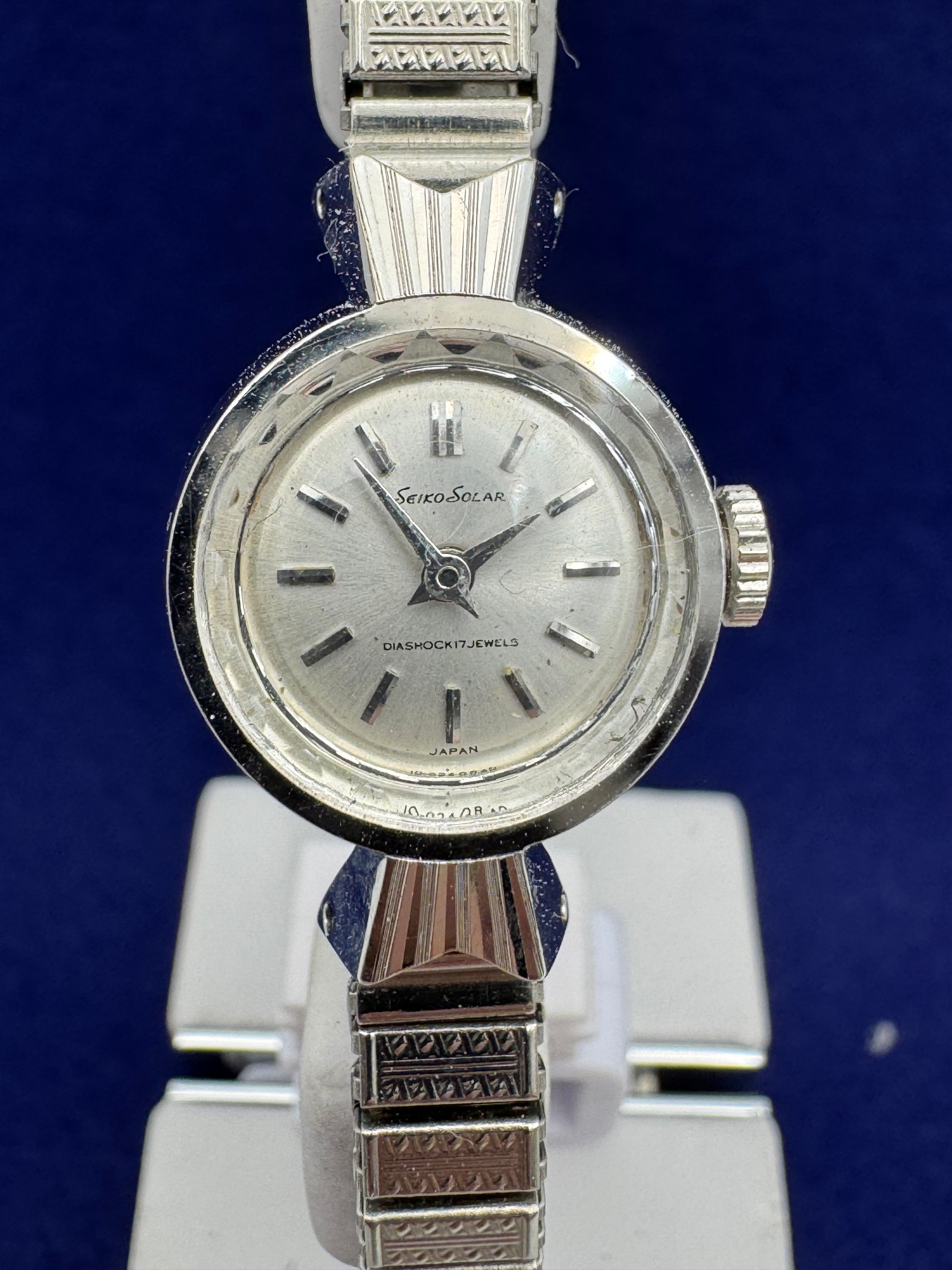 The Seiko Solar was introduced in the late 1950s to early 1960s as the successor to the Seiko Merit and was part of a new generation of mechanical ladies' wristwatches characterized by precision and elegant design.
