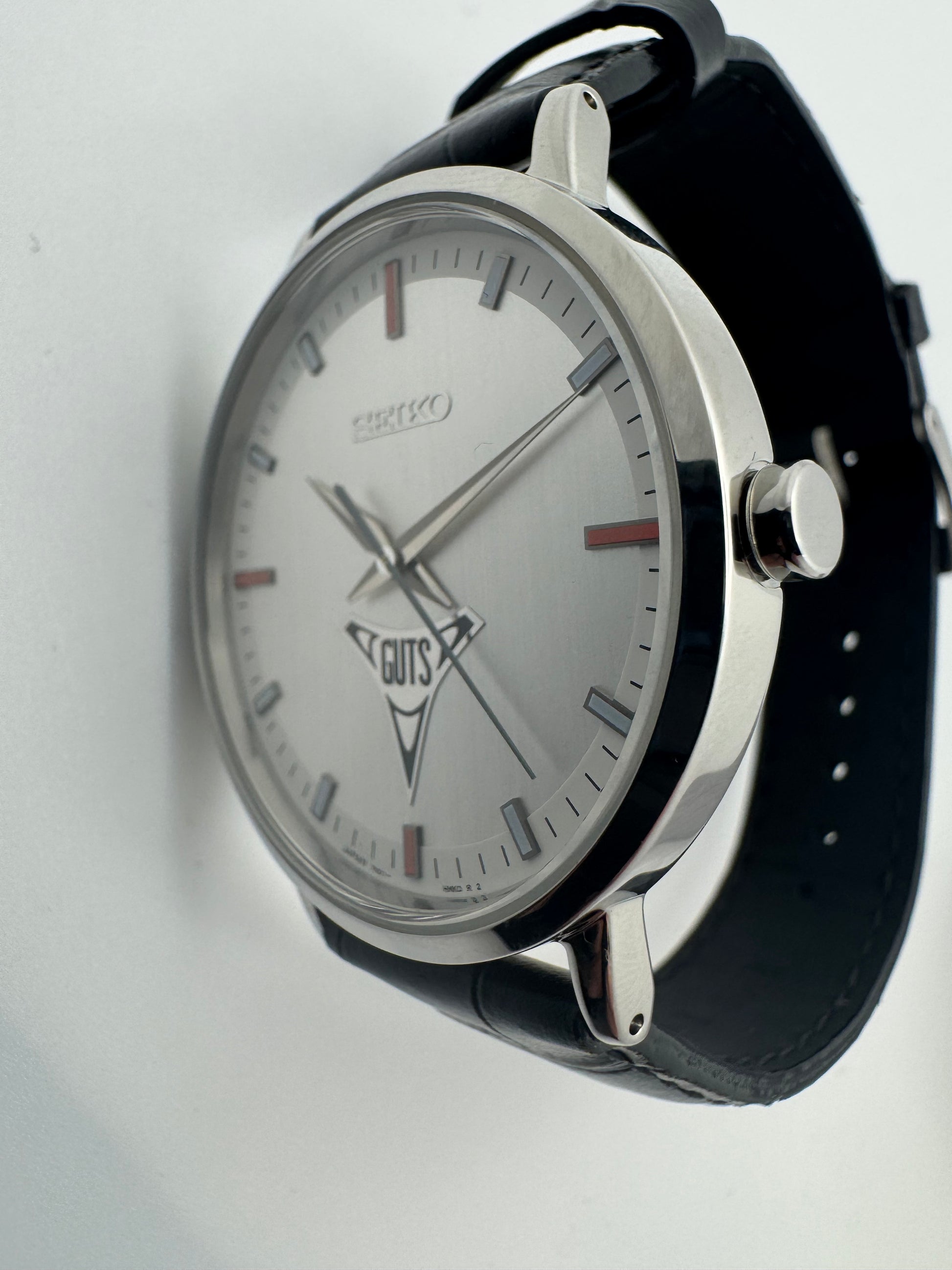 The simple, elegant design with the emblem of the special unit GUTS (Global Unlimited Task Squad) on the dial combines classic SEIKO design language with subtle pop culture references.