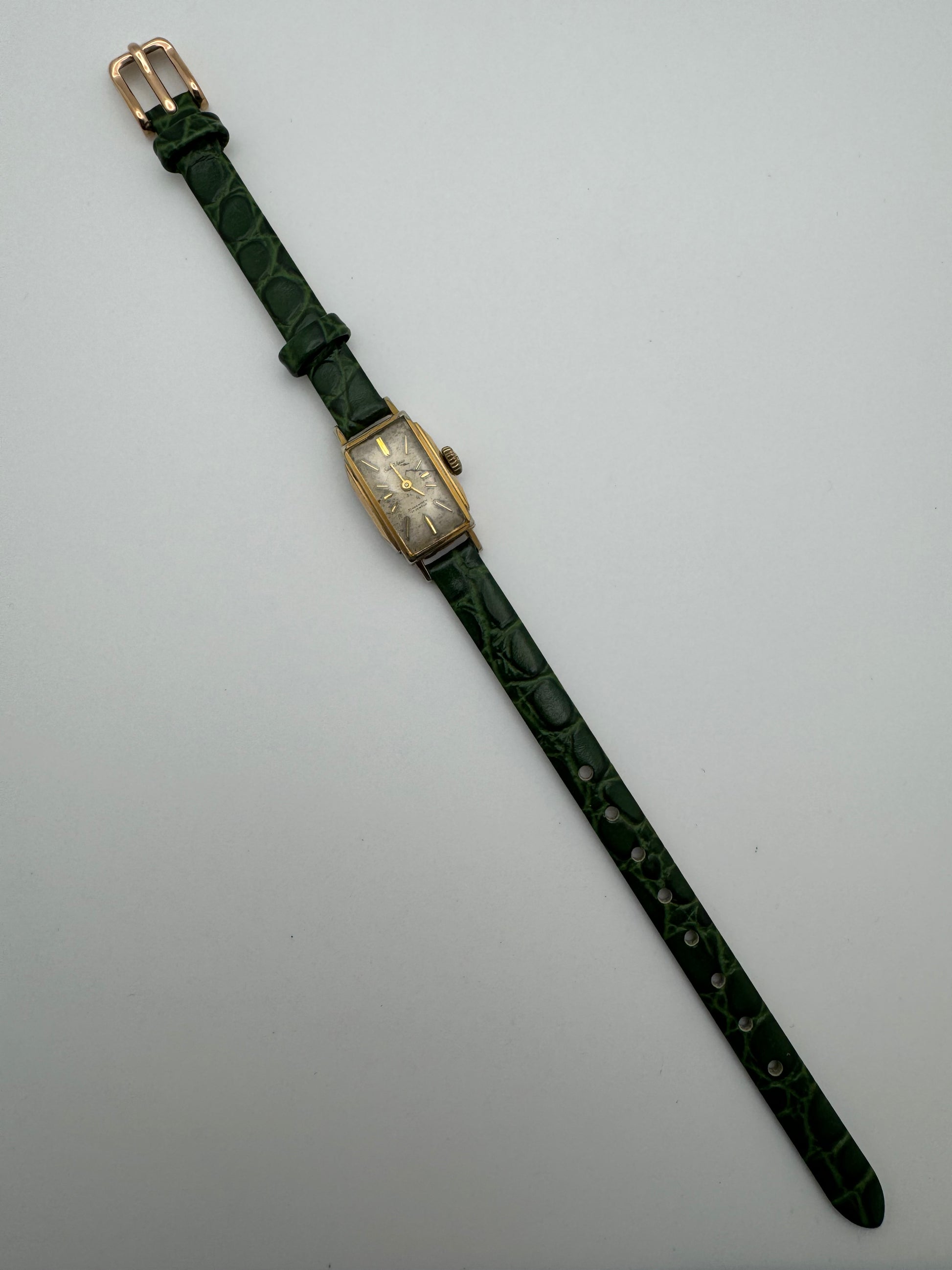 - Bracelet: New dark green leather strap with gold-tone buckle