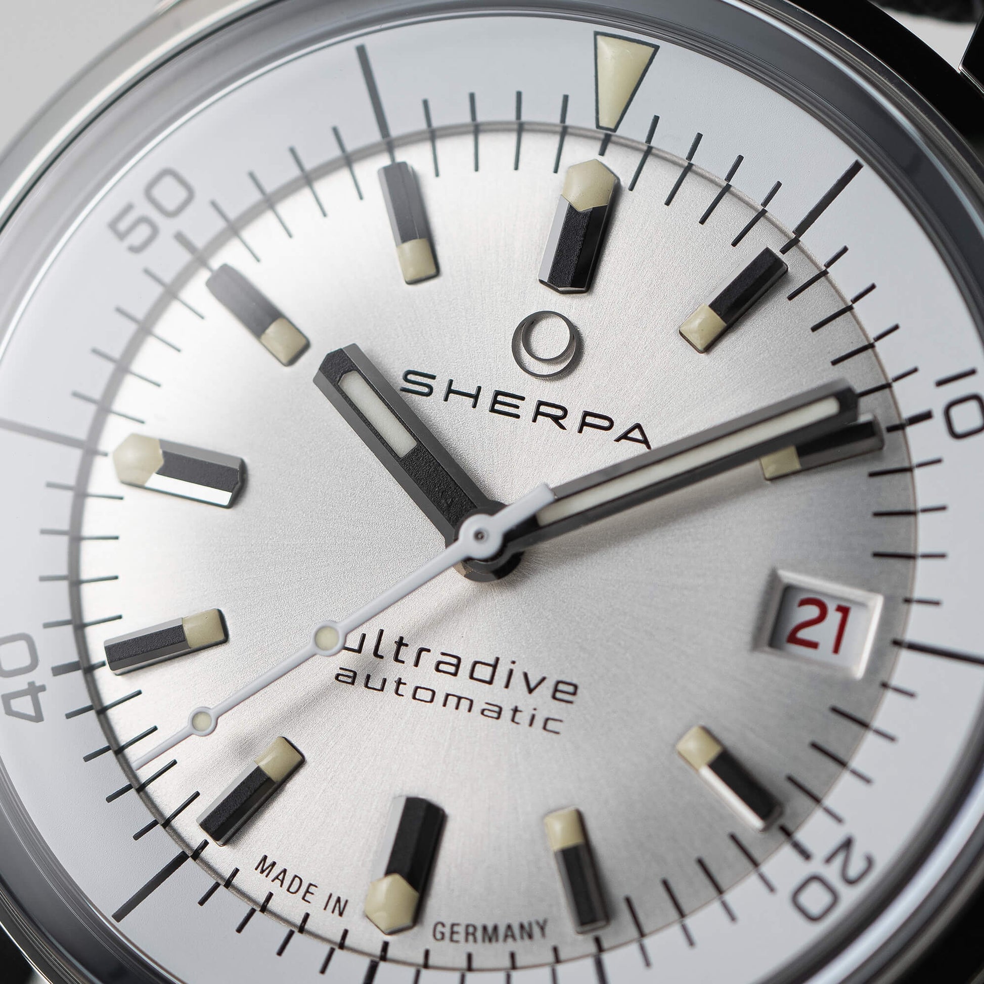 The Sherpa Ultradive is a compressor dive watch for those who love vintage design but don't want to compromise on modern quality and true everyday usability. Inspired by the legendary Sherpa models of the 1960s, it combines a clearly recognizable historical design language with a craftsmanship that feels noticeably high-quality on the wrist.