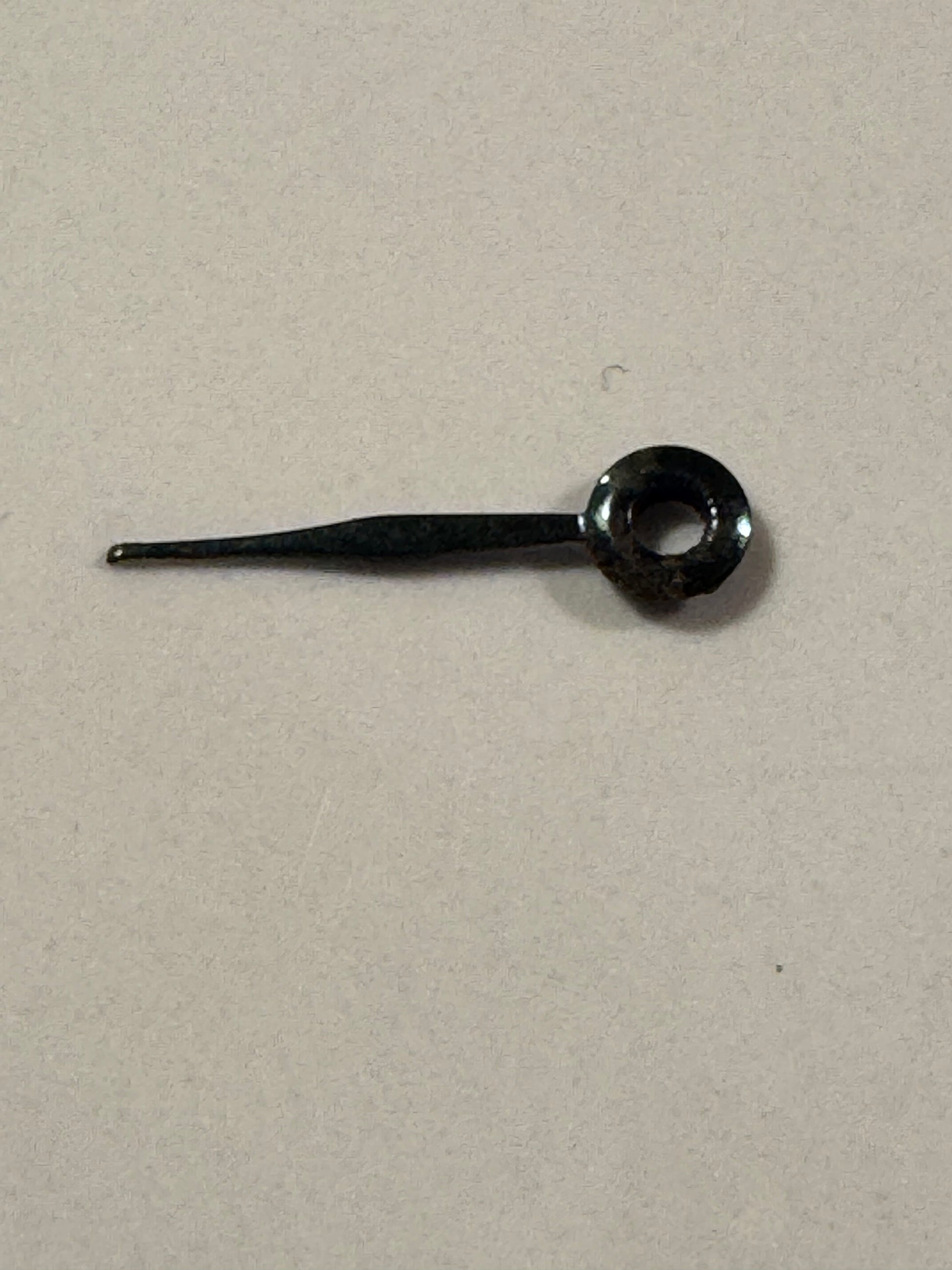This original blued hour hand is designed for small Seikosha wristwatches (“9 lines”).