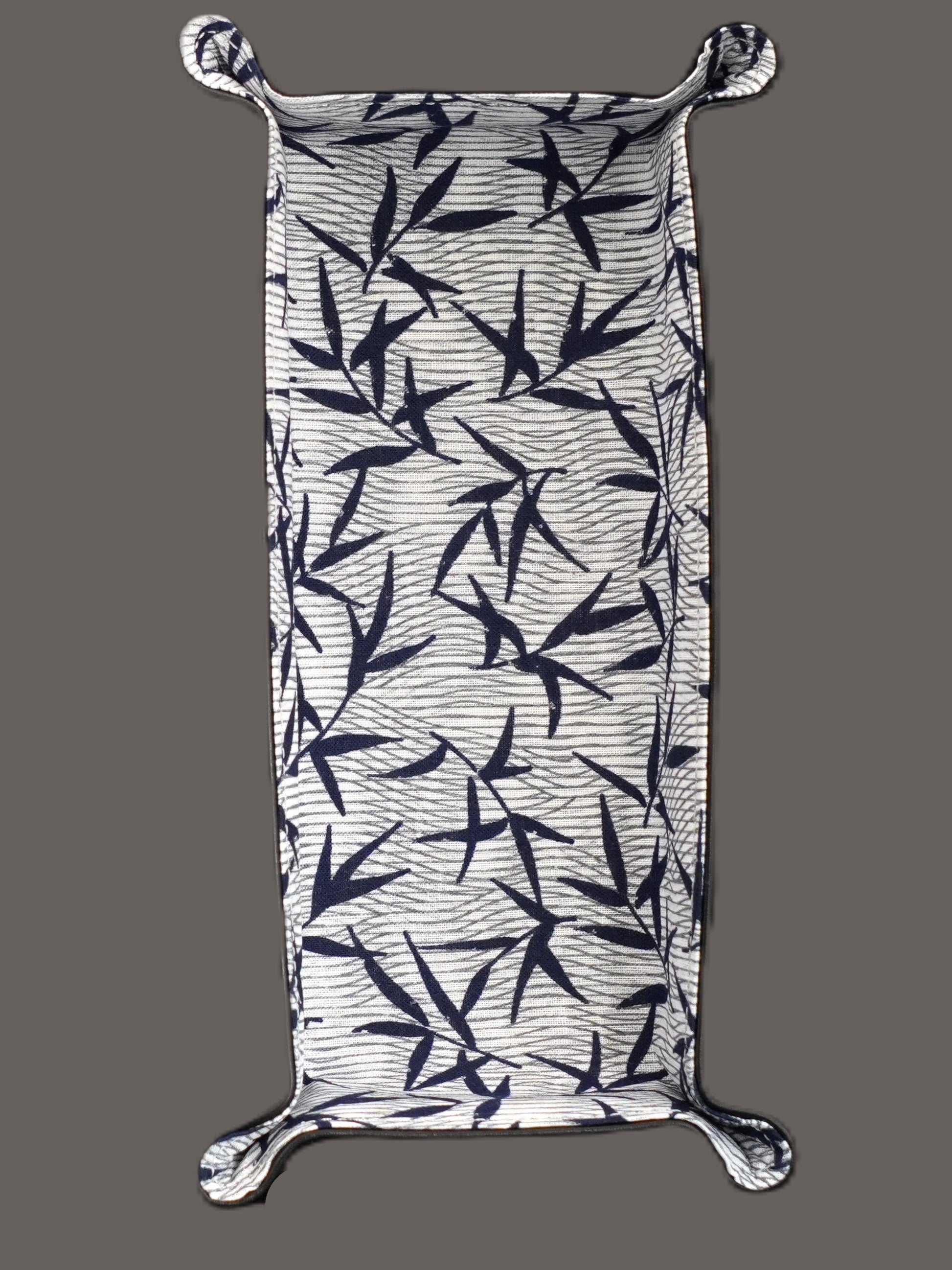 Plateau exclusif pour montres et bijoux – Pièces uniques fabriquées à la main à partir de tissus de kimonos japonais originaux, motif Branches du Japon bleu et blanc 24 x 12