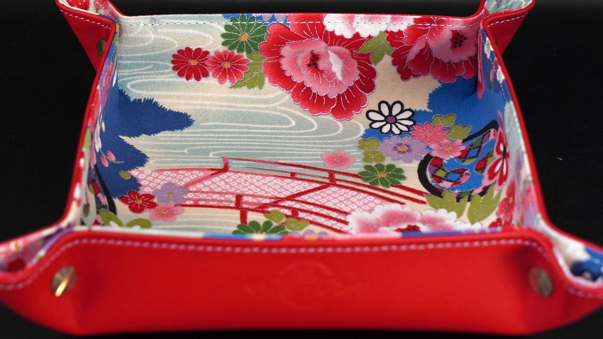 Plateau exclusif pour montres et bijoux – pièces uniques réalisées à la main à partir de tissus de kimonos japonais originaux, modèle Pont japonais et Papillon, 20 x 20 cm