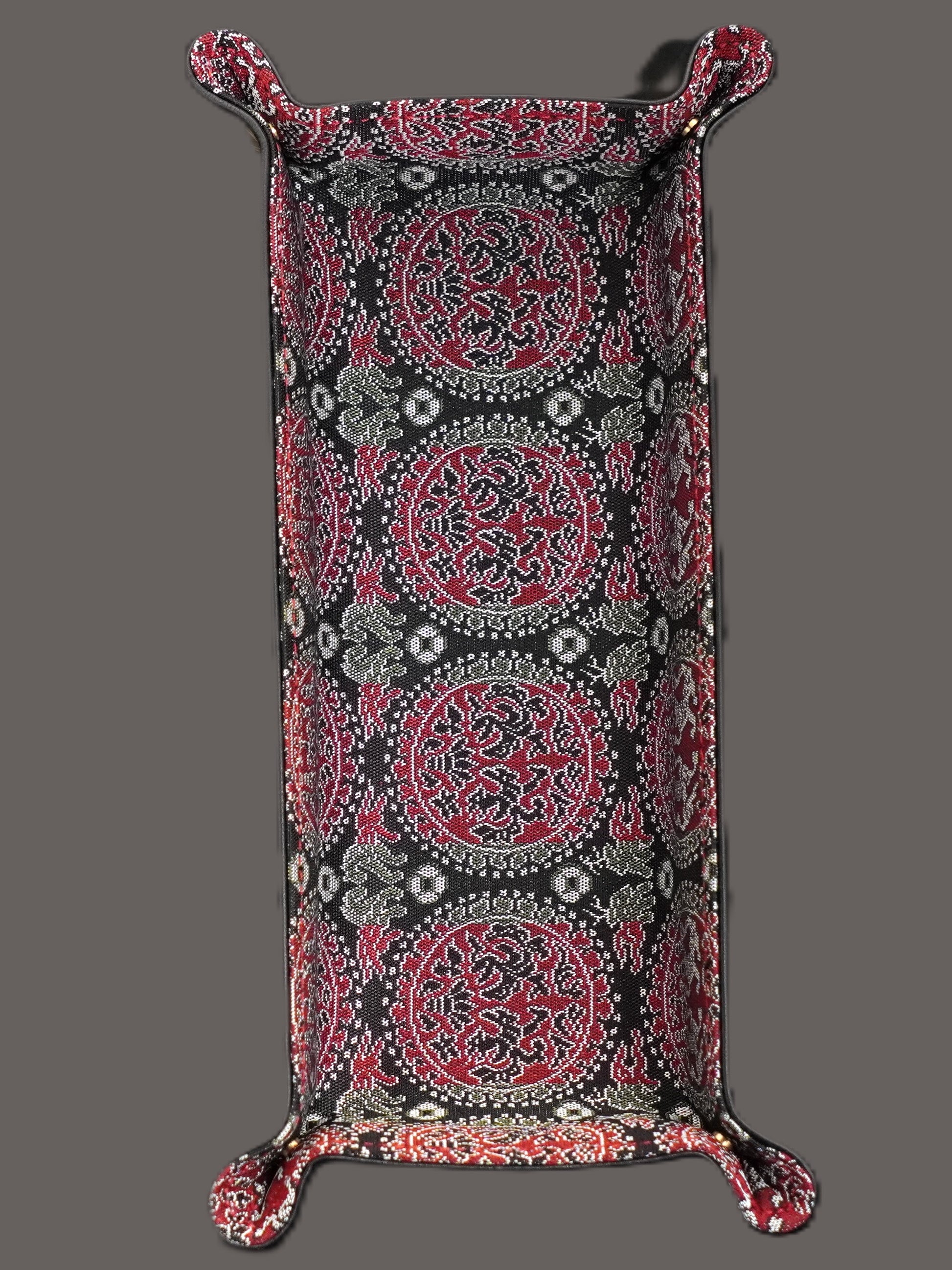 Plateau exclusif pour montres et bijoux – Pièces uniques réalisées à la main à partir de tissus de kimonos japonais originaux, modèle Cercles Japonais, 24 x 12 cm