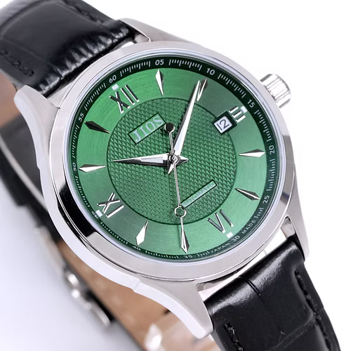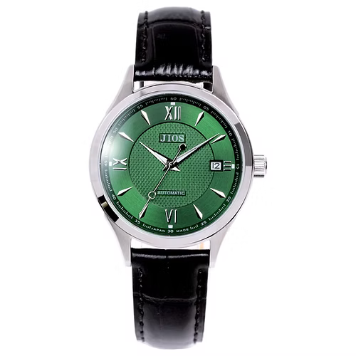 JIOS « SEIRAN » - cadran vert x aiguilles argentées x cuir noir