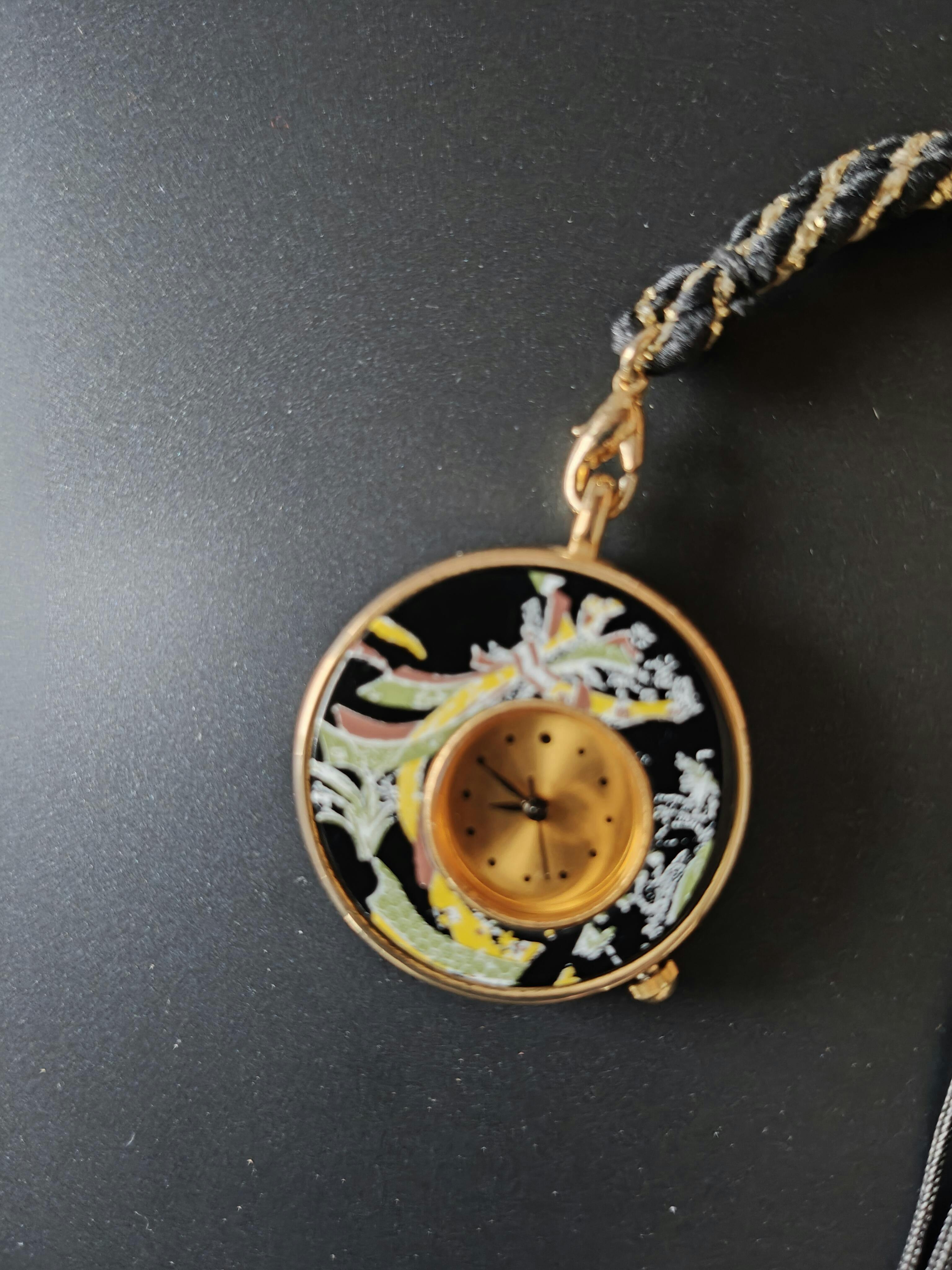 Pendentif montre de poche japonaise Kenjo en émail avec cordon (vintage) - Neuf