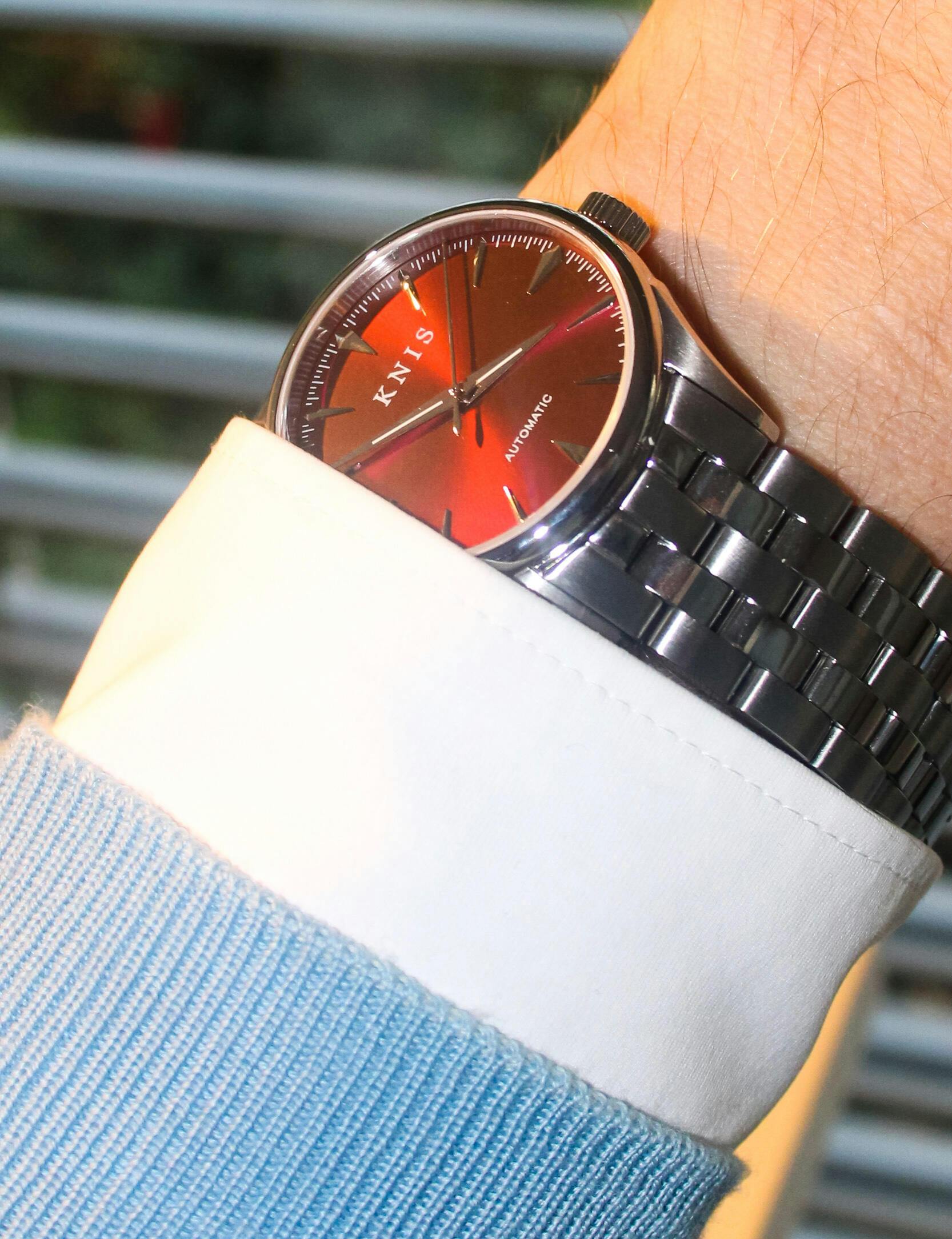 Cadran automatique KNIS Sunray rouge vin 38 mm