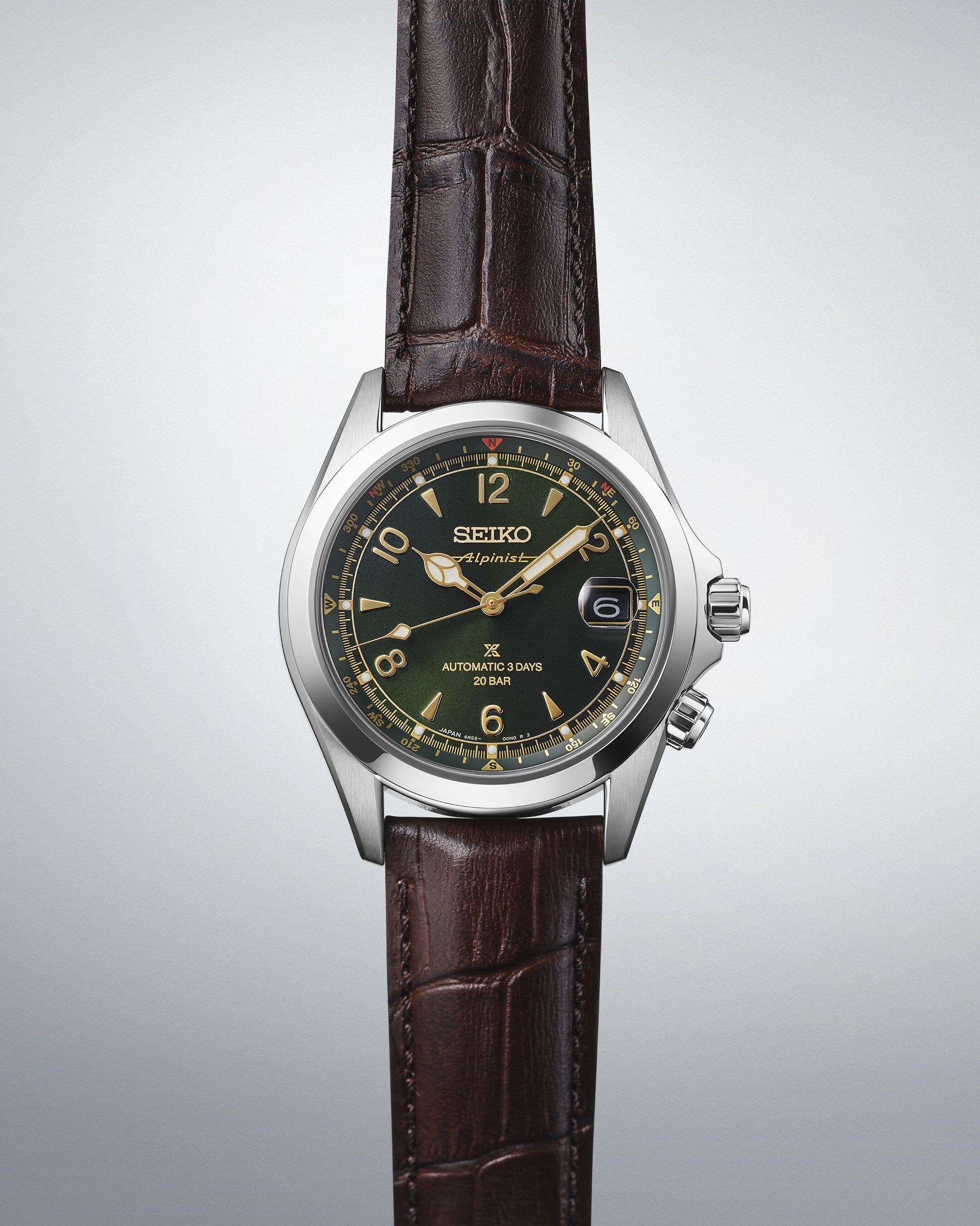 La montre est complétée par un bracelet en cuir marron clair , issu d'une production responsable, témoignant d'un engagement fort en faveur du développement durable. Ainsi, la SPB507J1 allie innovation technique, authenticité historique et une approche contemporaine des matériaux et de leur origine – une Prospex Alpinist pour celles et ceux qui portent l'histoire à leur poignet et repensent le temps.
