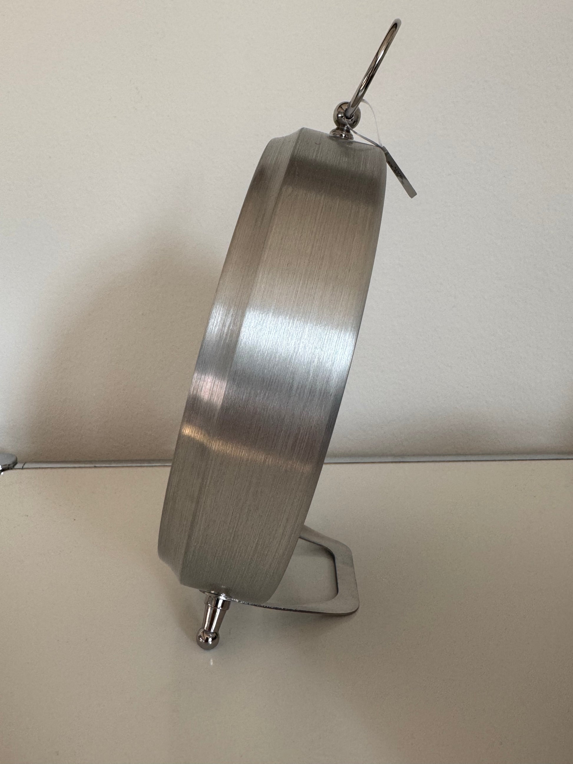 Mit der Desk Clock QXG155S zeigt Seiko, dass auch eine Tischuhr Charakter haben kann. Das Design ist klassisch, klar und repräsentativ: ein silberfarbenes Aluminiumgehäuse, ein helles Zifferblatt und römische Ziffern, die der Uhr eine zeitlose, beinahe traditionelle Ausstrahlung verleihen. Gerade auf dem Schreibtisch, im Regal oder auf einem Sideboard wirkt dieses Modell elegant, ohne sich in den Vordergrund zu drängen.