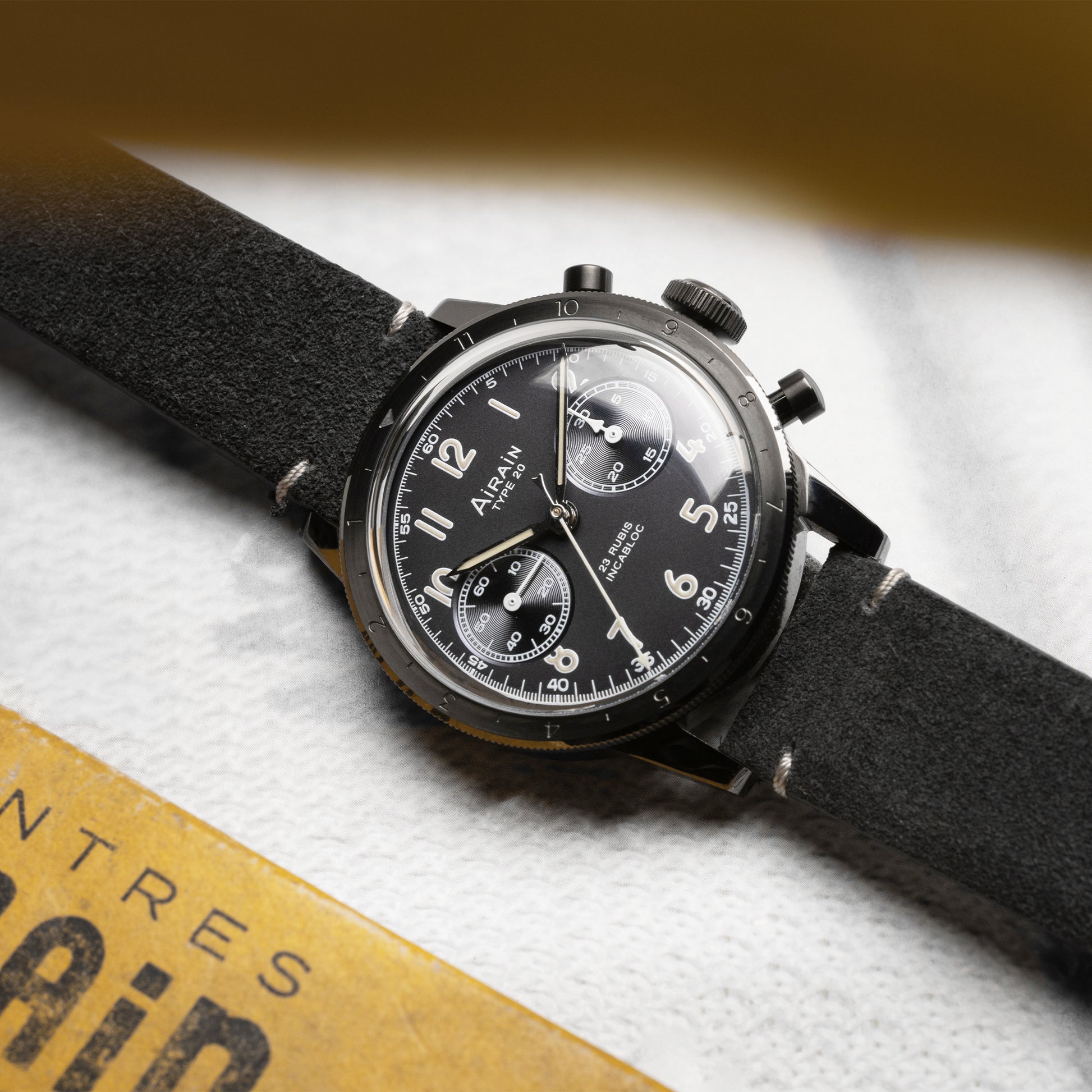 Airain steht für historische Pilotenuhren nach französischer „Type 20“-Spezifikation: robuste Technik, beste Ablesbarkeit, Flyback-Funktion – gebaut fürs präzise Mission-Timing, heute geliebt wegen der zeitlosen Optik.