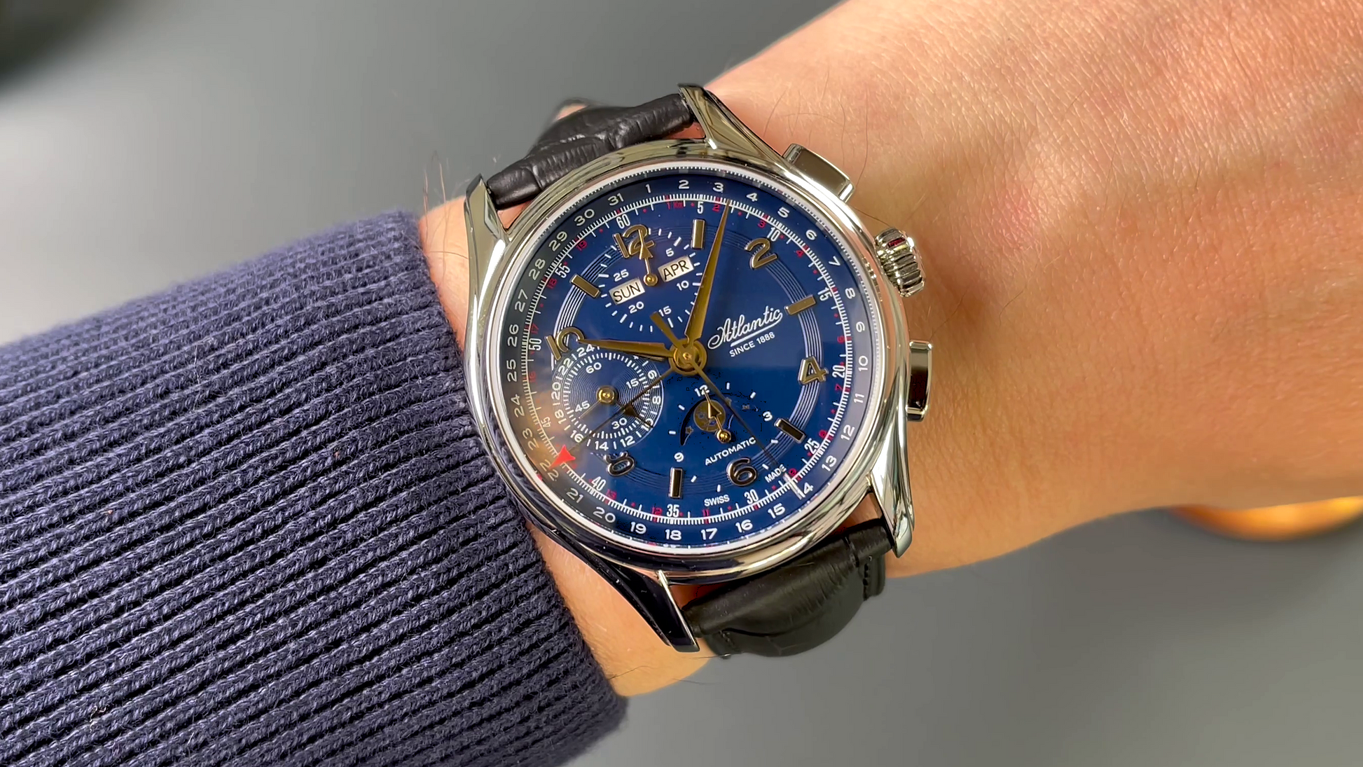 Atlantic Worldmaster 1888 Automatic Moonphase Chronograph Blau | Limited Edition mit goldenem Uhrwerk