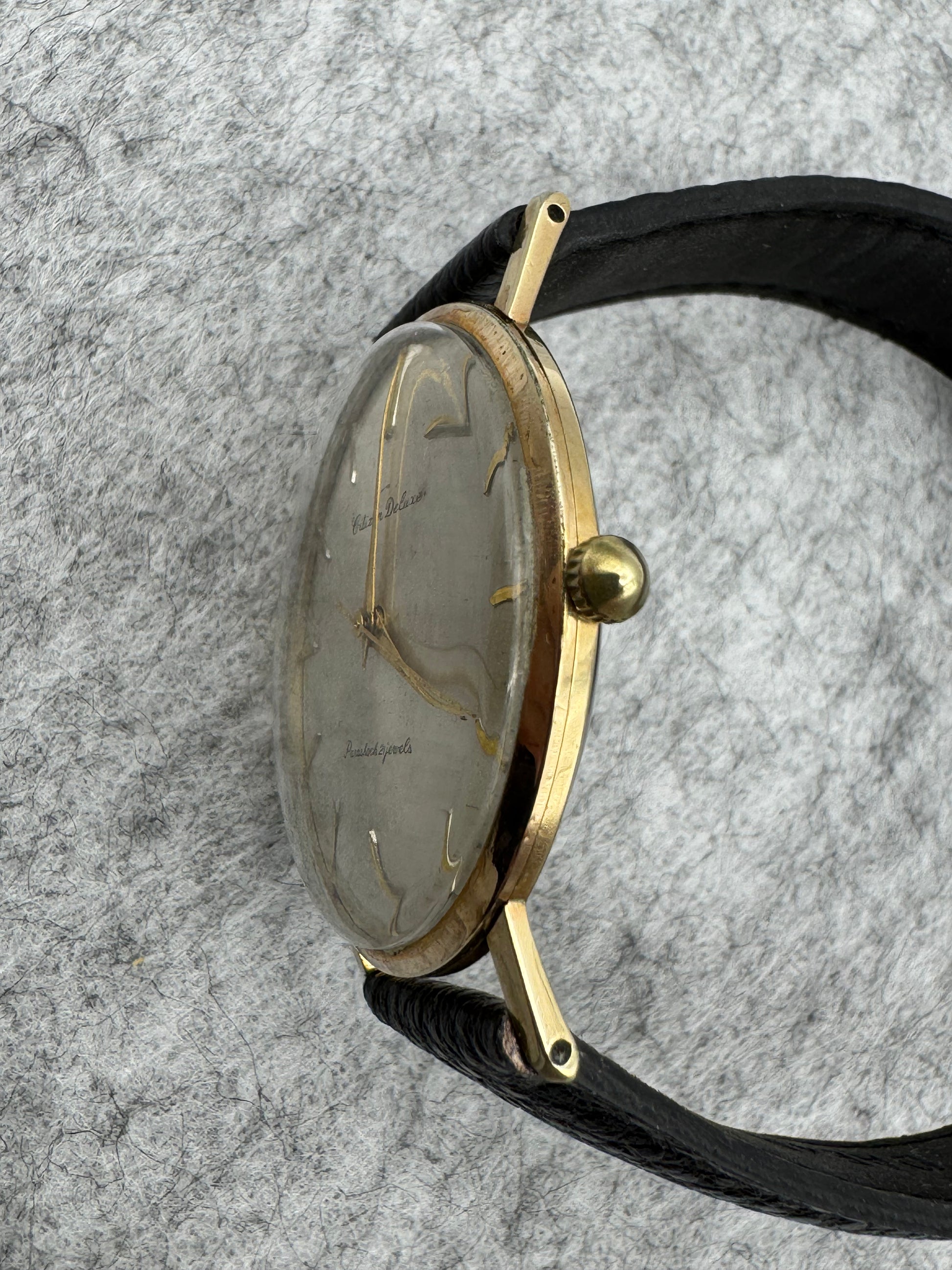 Elegante Citizen Deluxe aus der frühen 1960er-Jahren – ein Klassiker der japanischen Nachkriegsuhren mit feinem Handaufzugswerk, goldfarbenem Gehäuse und neuem Seiko-Lederarmband.