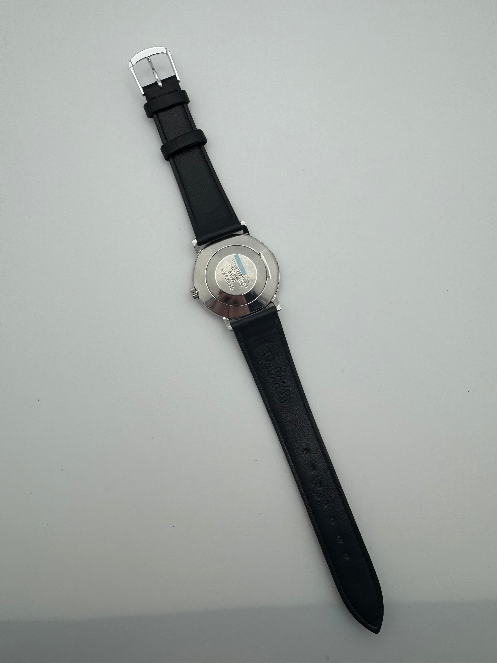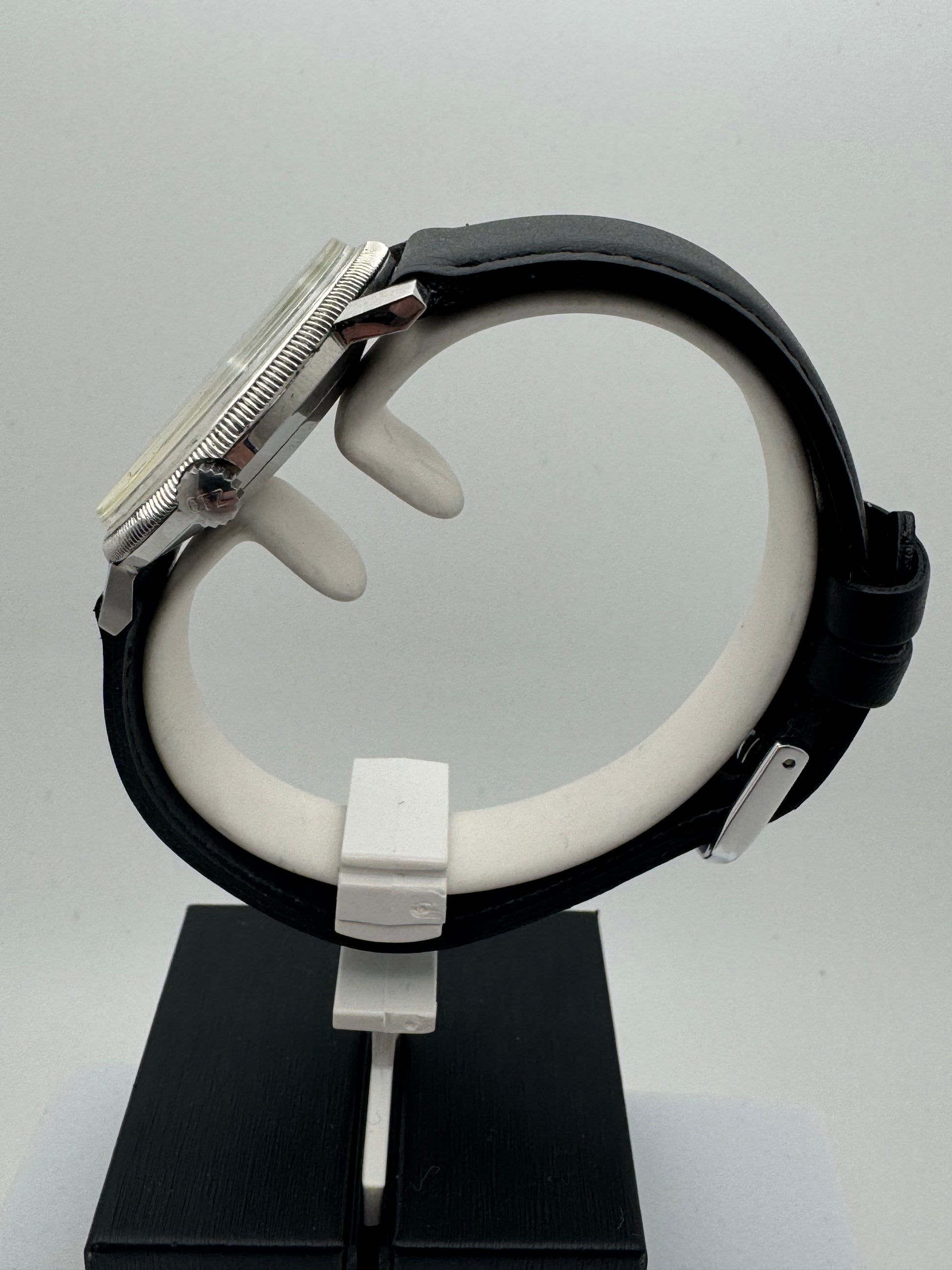 Das neue schwarze Lederarmband unterstreicht den klassischen Charakter dieser Sammleruhr.