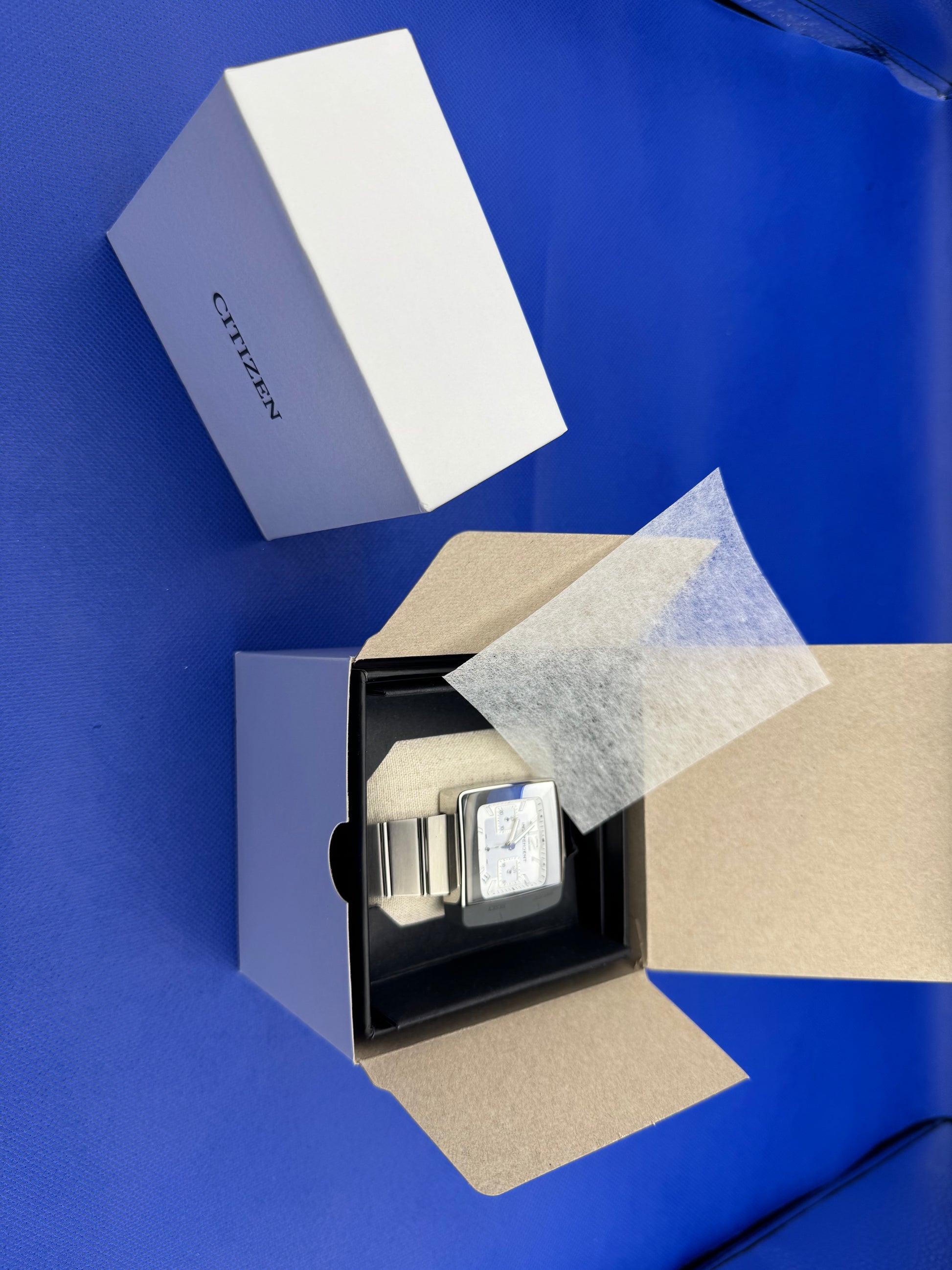 Im Inneren arbeitet das präzise Citizen-Kaliber J52-S112015 (Japan Mov’t) – ein zuverlässiges Quarz-Chronographenwerk mit 24-Stunden-Anzeige und 60-Minuten-Totalisator.