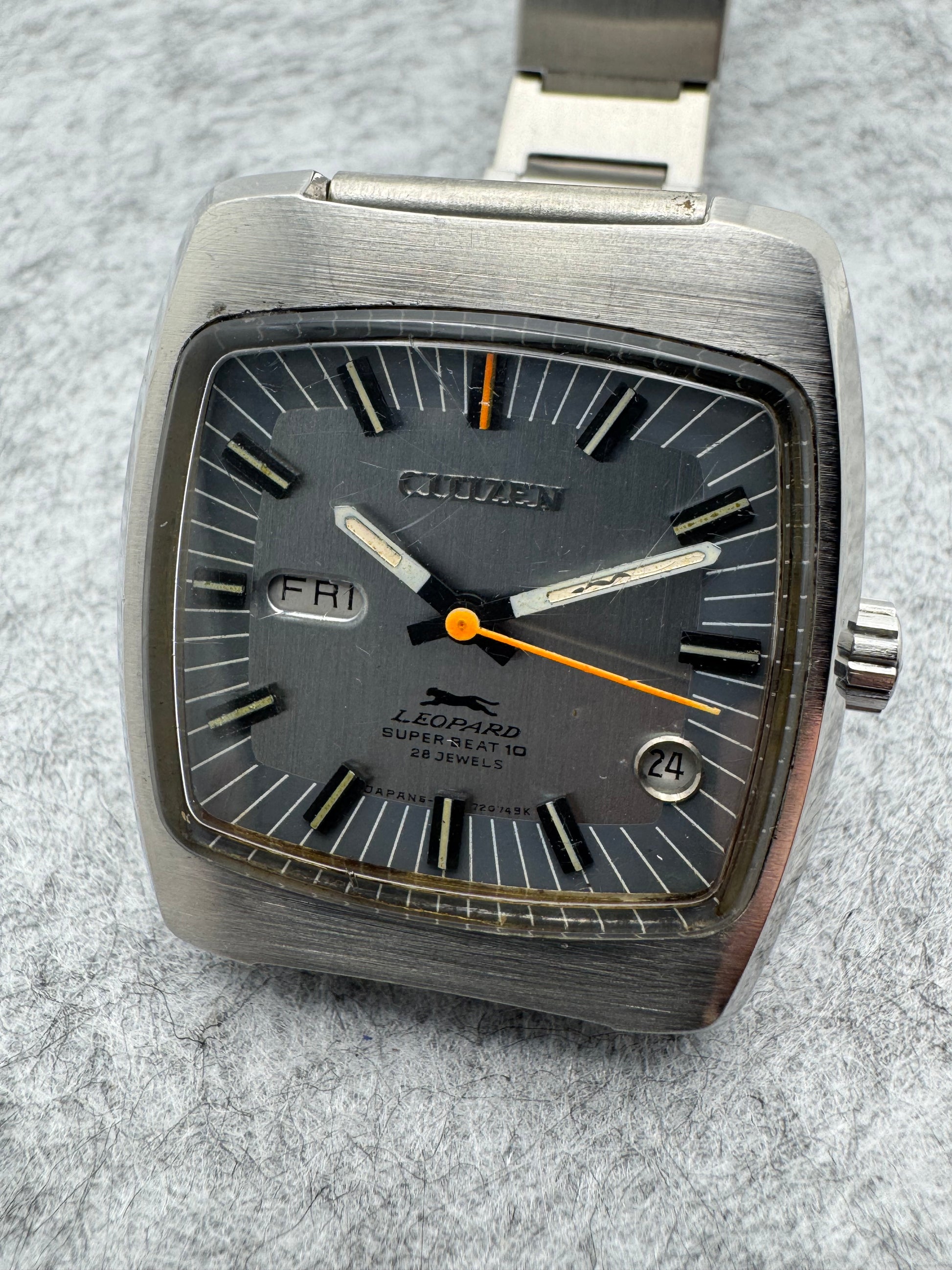 Während Seiko vor allem auf Präzision im Chronometerbereich setzte, kombinierte Citizen im Leopard sportlichere Gehäuseformen mit High-Beat-Technik und avantgardistischen Zifferblattgestaltungen.