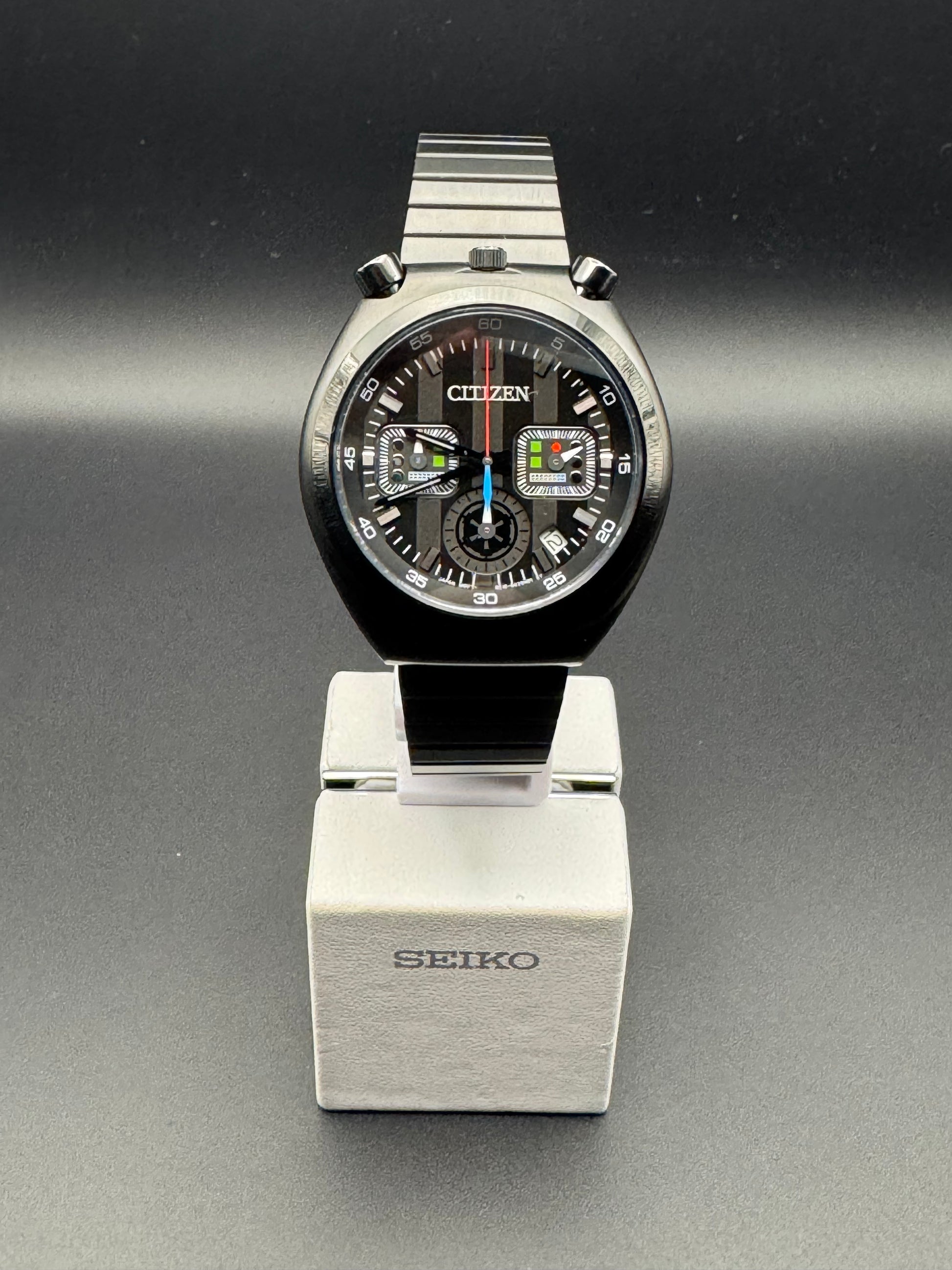 Die Citizen Star Wars Darth Vader 0510-A5T4W04 ist eine streng limitierte Sonderedition (nur 600 Exemplare) aus Citizens gefeierter Star Wars Collection – exklusiv für den japanischen Markt produziert und dort bereits vollständig ausverkauft.