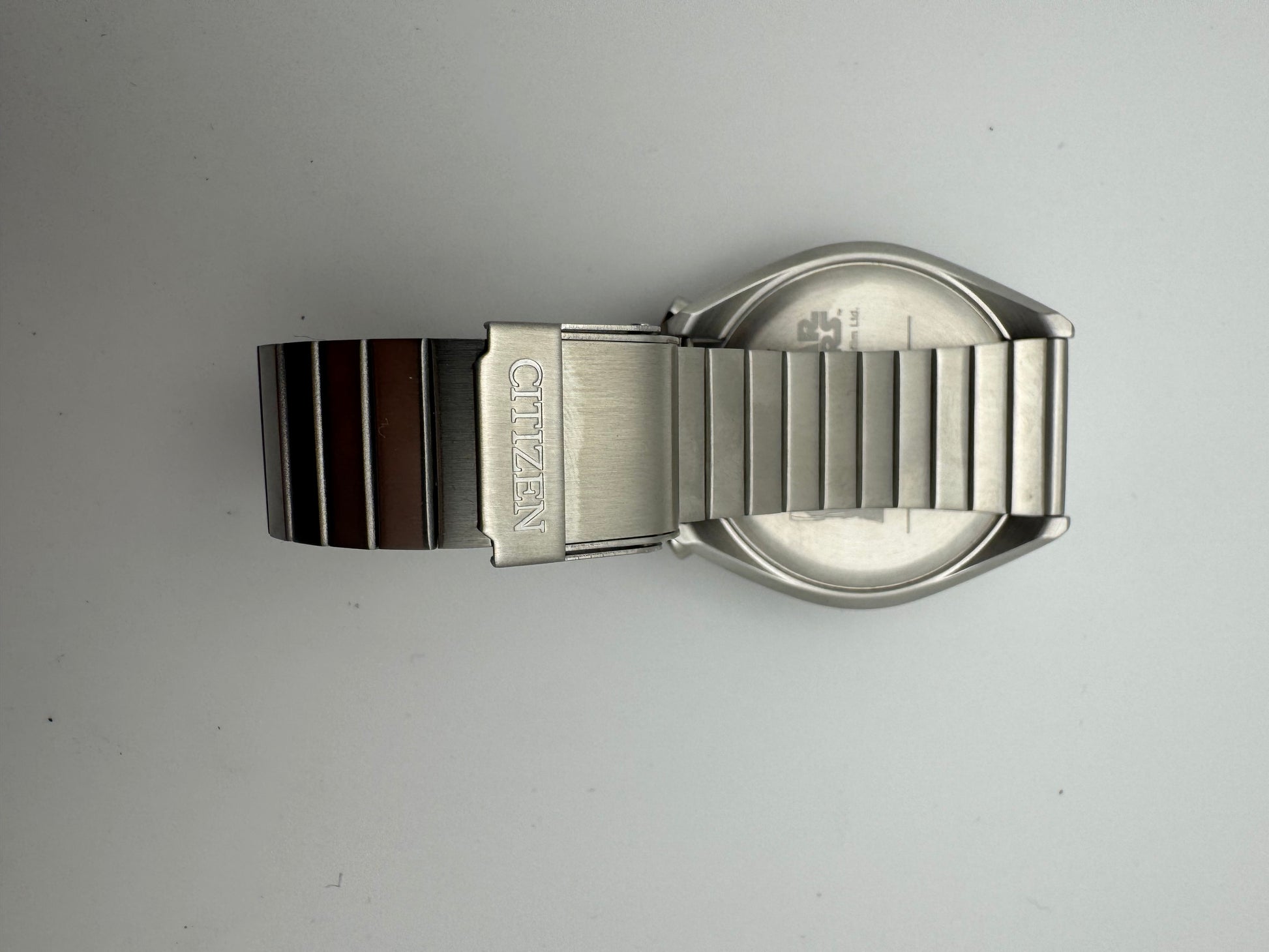 Das fein gebürstete Edelstahlgehäuse und das perfekt integrierte Edelstahlarmband mit Faltschließe spiegeln die hochwertige Verarbeitung wider, für die Citizen in Japan bekannt ist.