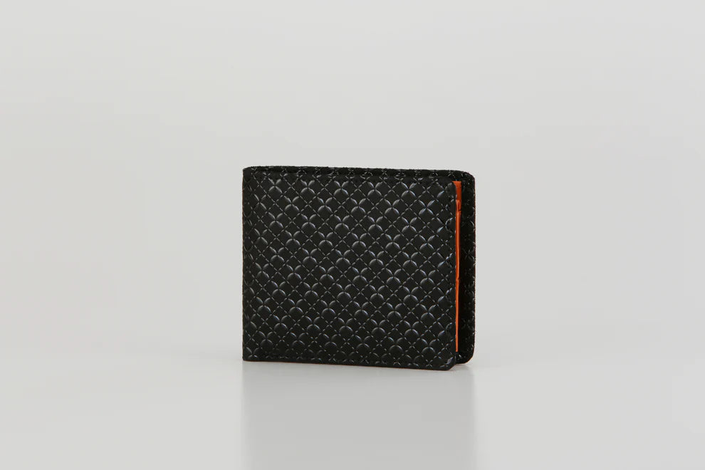 Die Farbvariante BK x BK (Schwarz auf Schwarz) wirkt besonders zurückhaltend und elegant – das traditionelle Muster tritt erst im Lichtspiel wirklich hervor. Das Shippou-Motiv „New Seven Treasures“ verweist auf die sieben Schätze des Buddhismus – Silber, Gold, Koralle, Lapislazuli, Achat, Muschel und Bernstein. In der japanischen Gestaltung steht dieses Muster für Verbundenheit, gute Beziehungen und Harmonie – eine schöne symbolische Note für ein Portemonnaie, das man täglich in der Hand hat.