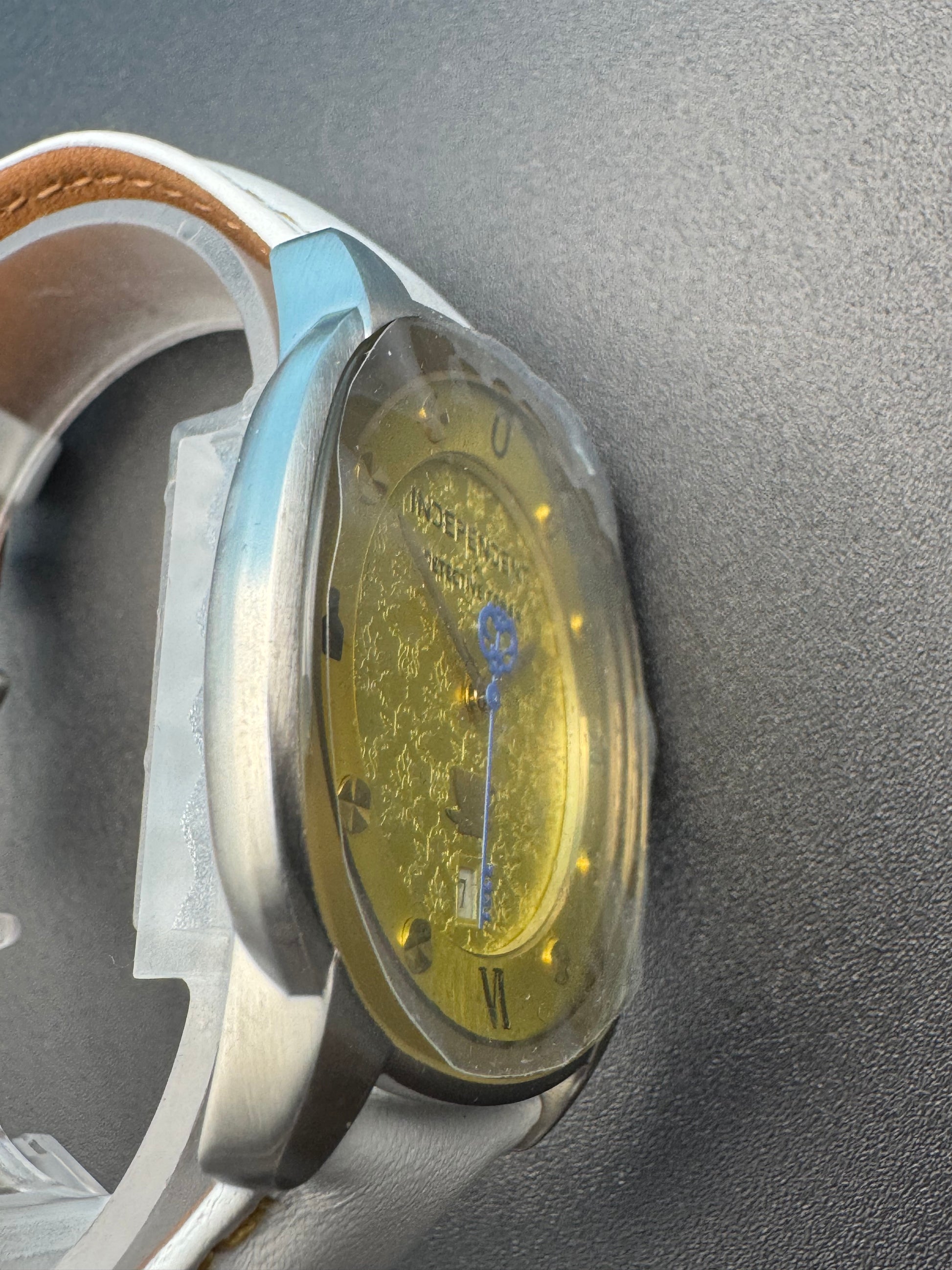 Neu/Ungetragen, NOS-Charakter, alle Schutzfolien vorhanden; frischer Batteriewechsel 10/2025 ⇒ sofort einsatzbereit. Sammlerfreundliche niedrige Limitierungsnummer 0153/2000.