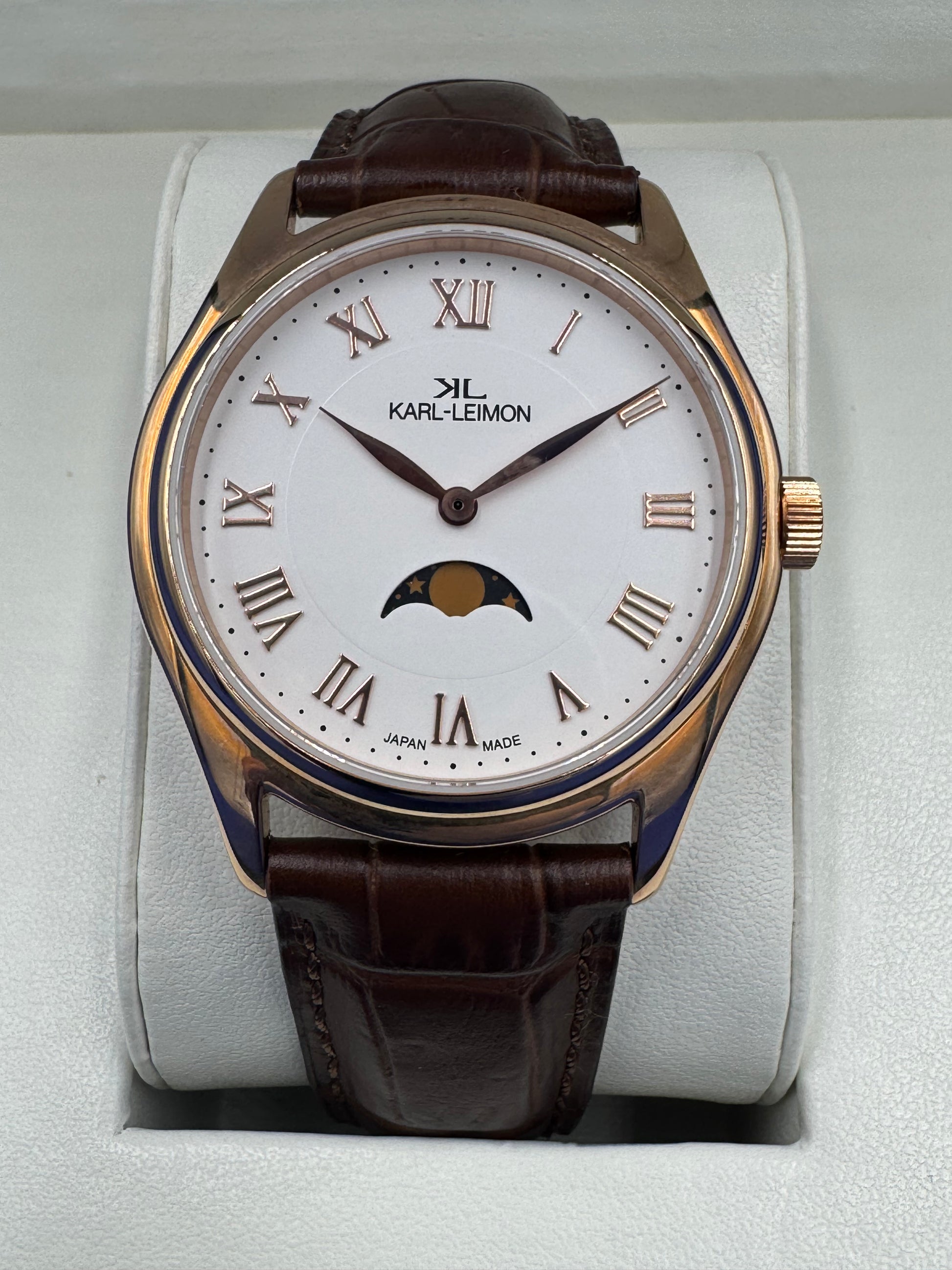 Karl-Leimon ist eine unabhängige japanische Uhrenmarke, die 2017 in Tokio gegründet wurde. Hinter der Marke stehen zwei Uhrenliebhaber, die den Anspruch teilen, klassische Designs und hochwertige Handwerkskunst in einem zeitgemäßen, erschwinglichen Rahmen neu zu interpretieren. Der Markenname „Karl-Leimon“ vereint die Vornamen der Gründer und steht symbolisch für die Verbindung von europäischer Designtradition und japanischer Präzision.