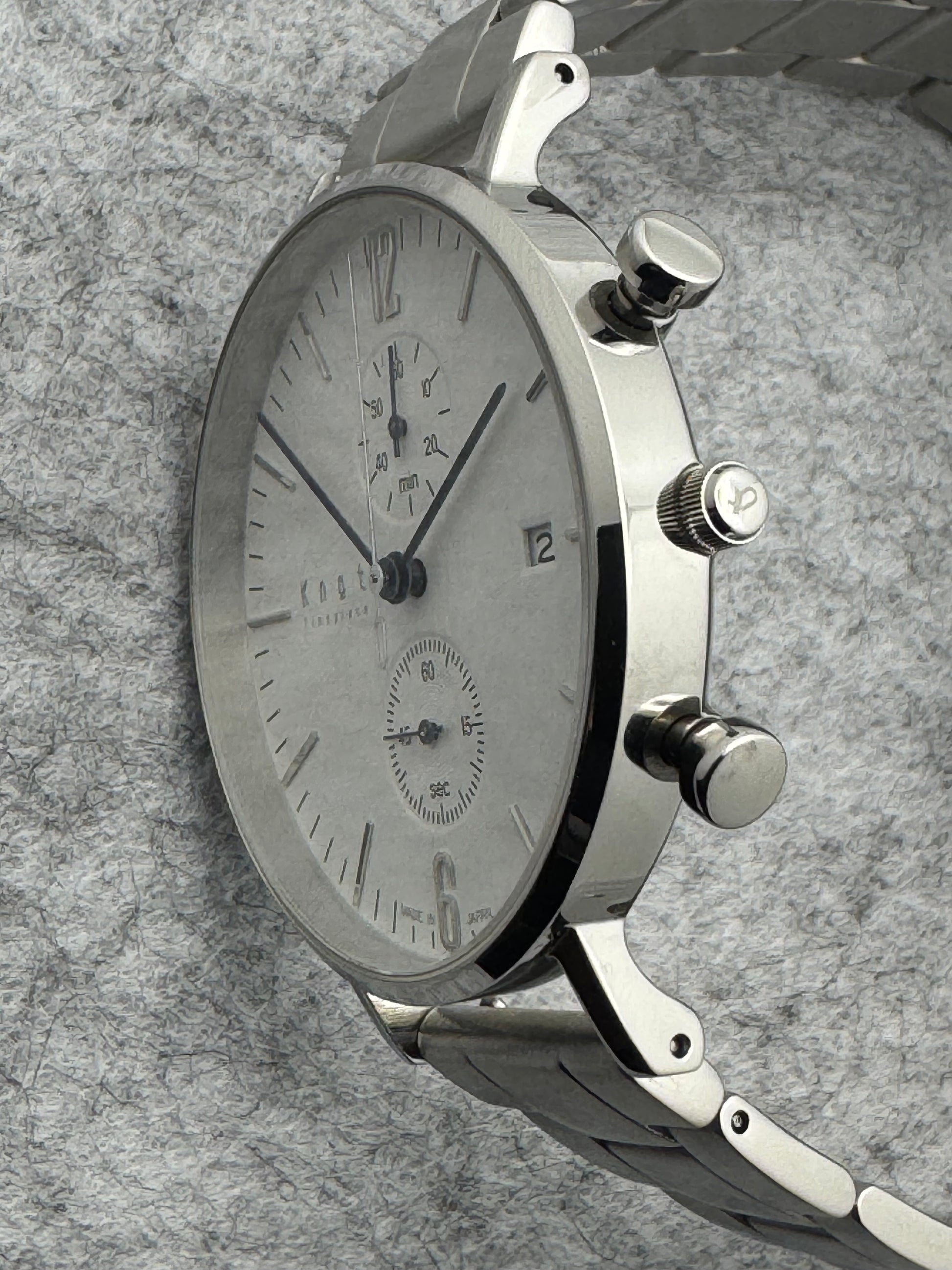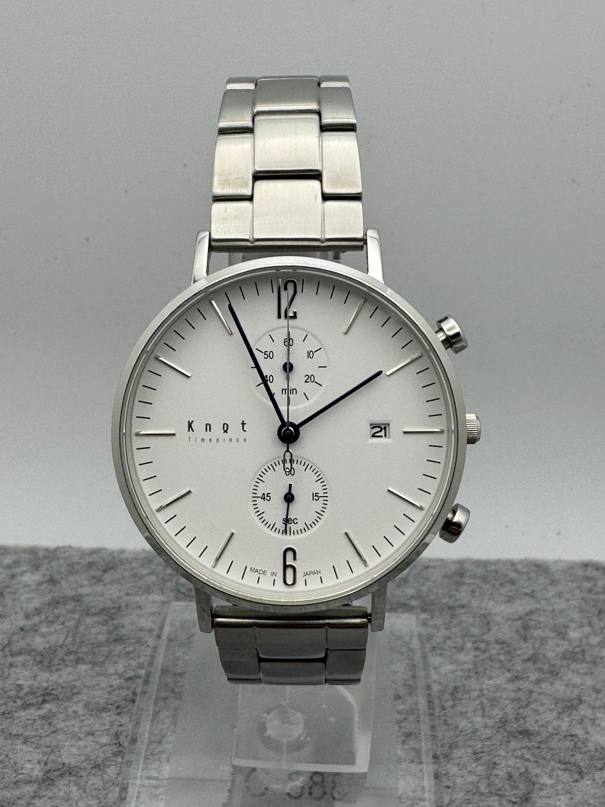 Knot Japan Chronograph CC-39 – Weißes Zifferblatt / Edelstahlband (Made in Japan)