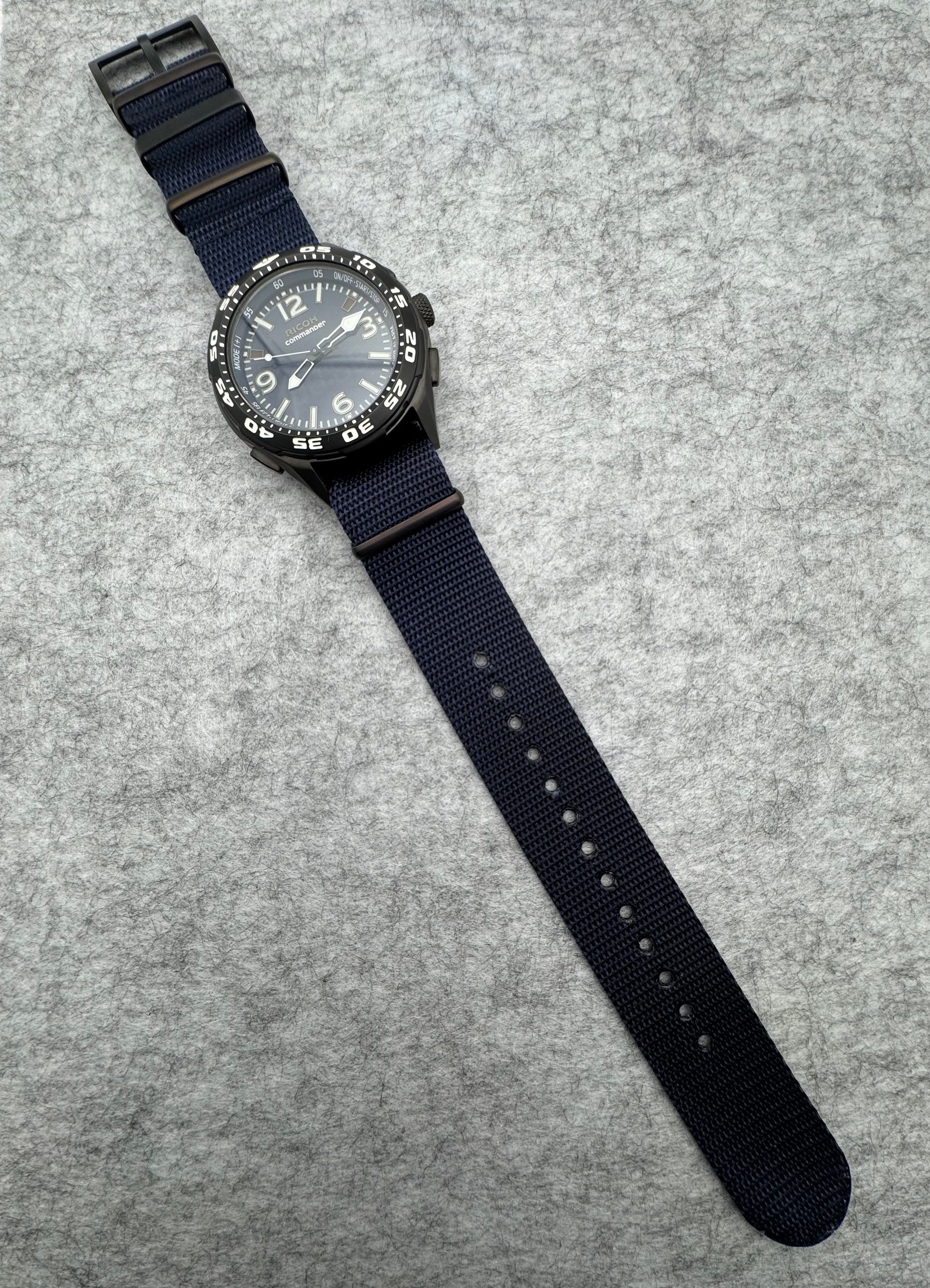 - Armband: Originales NATO-Band (dunkelblau) + zweites ungetragenes Originalband