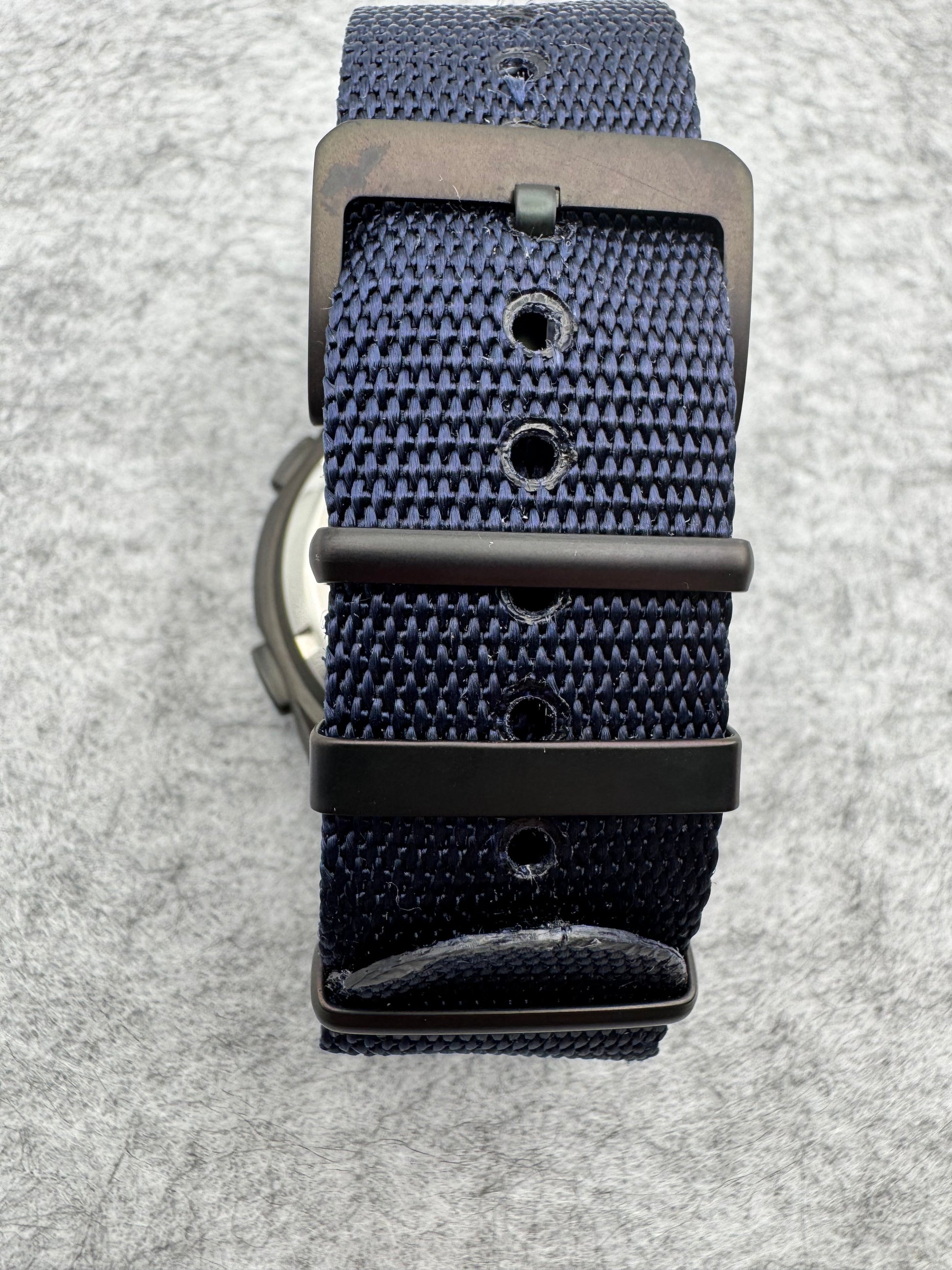 Dieses Exemplar stammt aus japanischer Produktion (2016) und befindet sich in nahezu ungetragenem Neuzustand – vollständig mit Originalbox, Ladegerät, Adapter, Anleitung, Garantiekarte und zusätzlichem, unbenutztem NATO-Armband.