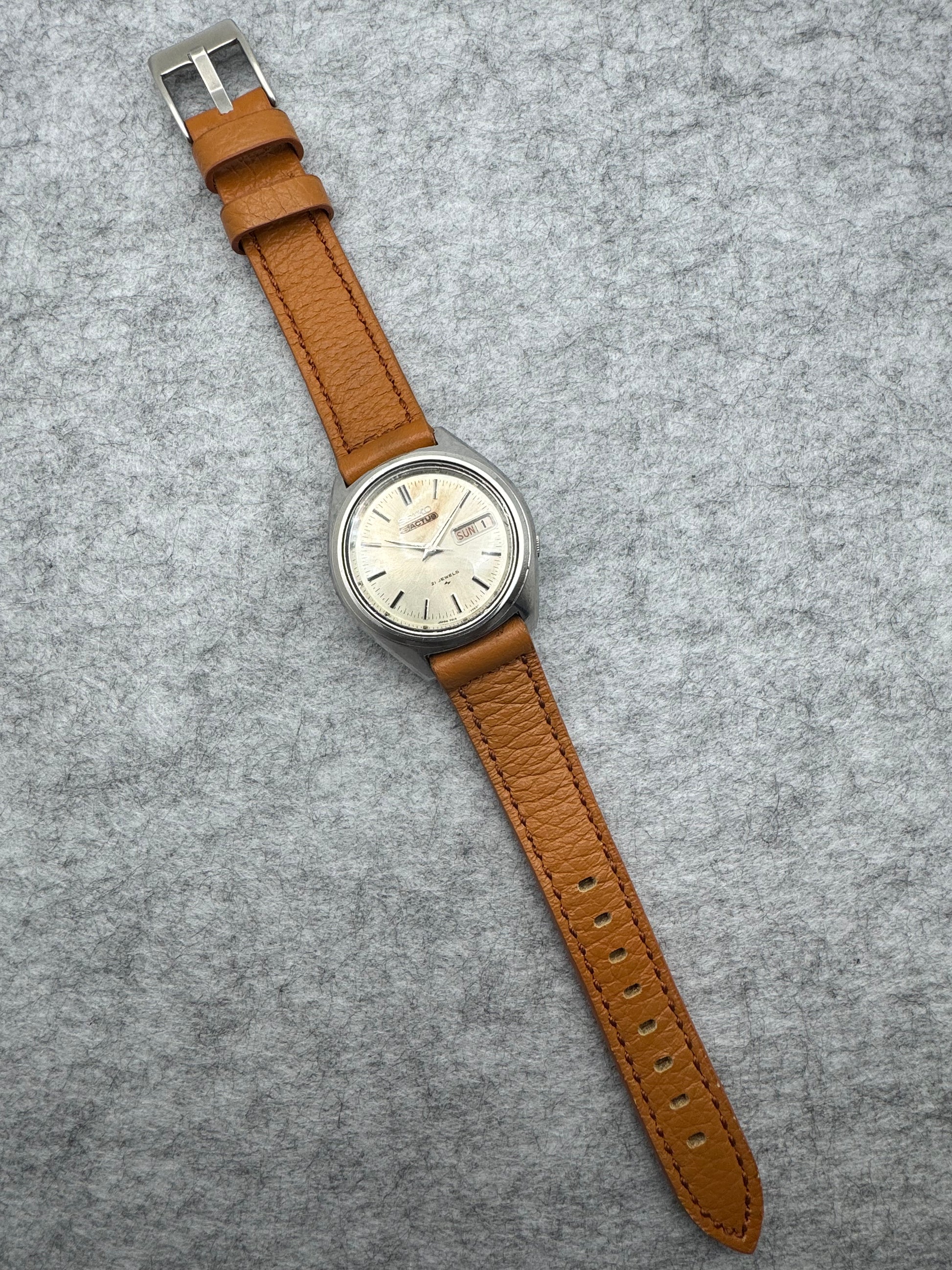 Diese elegante Seiko 5 Actus Automatic stammt aus Dezember 1971 und wurde im traditionsreichen Suwa Seikosha Werk gefertigt. Sie ist Teil einer der interessantesten Linien der Seiko-Geschichte – der „Actus“-Serie, die ab 1969 für den japanischen Markt entwickelt wurde, um eine jüngere, urban orientierte Zielgruppe anzusprechen.