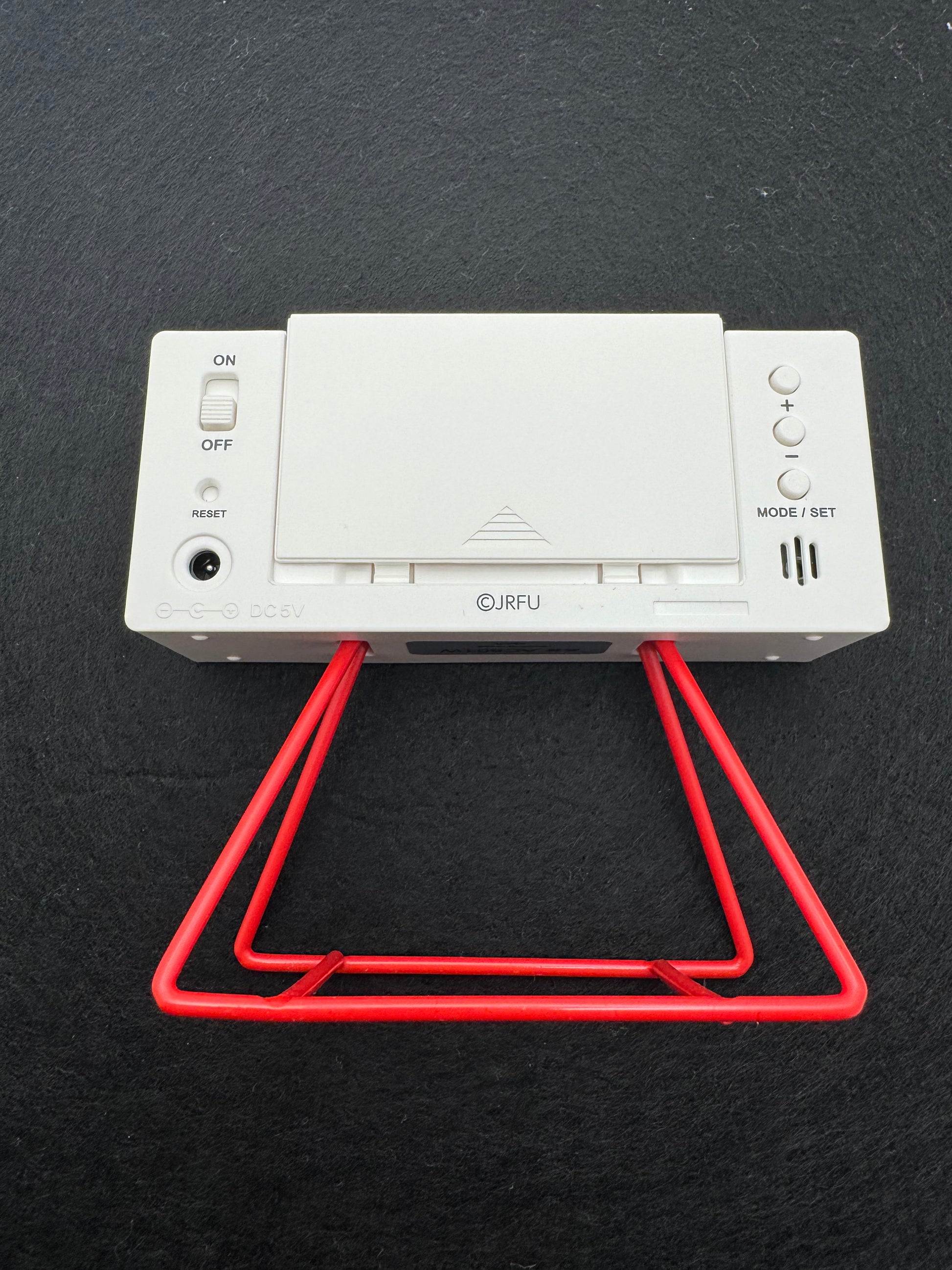 - Funktionen: Uhrzeit, Alarm, Snooze, 24h-Anzeigeoption, Reset