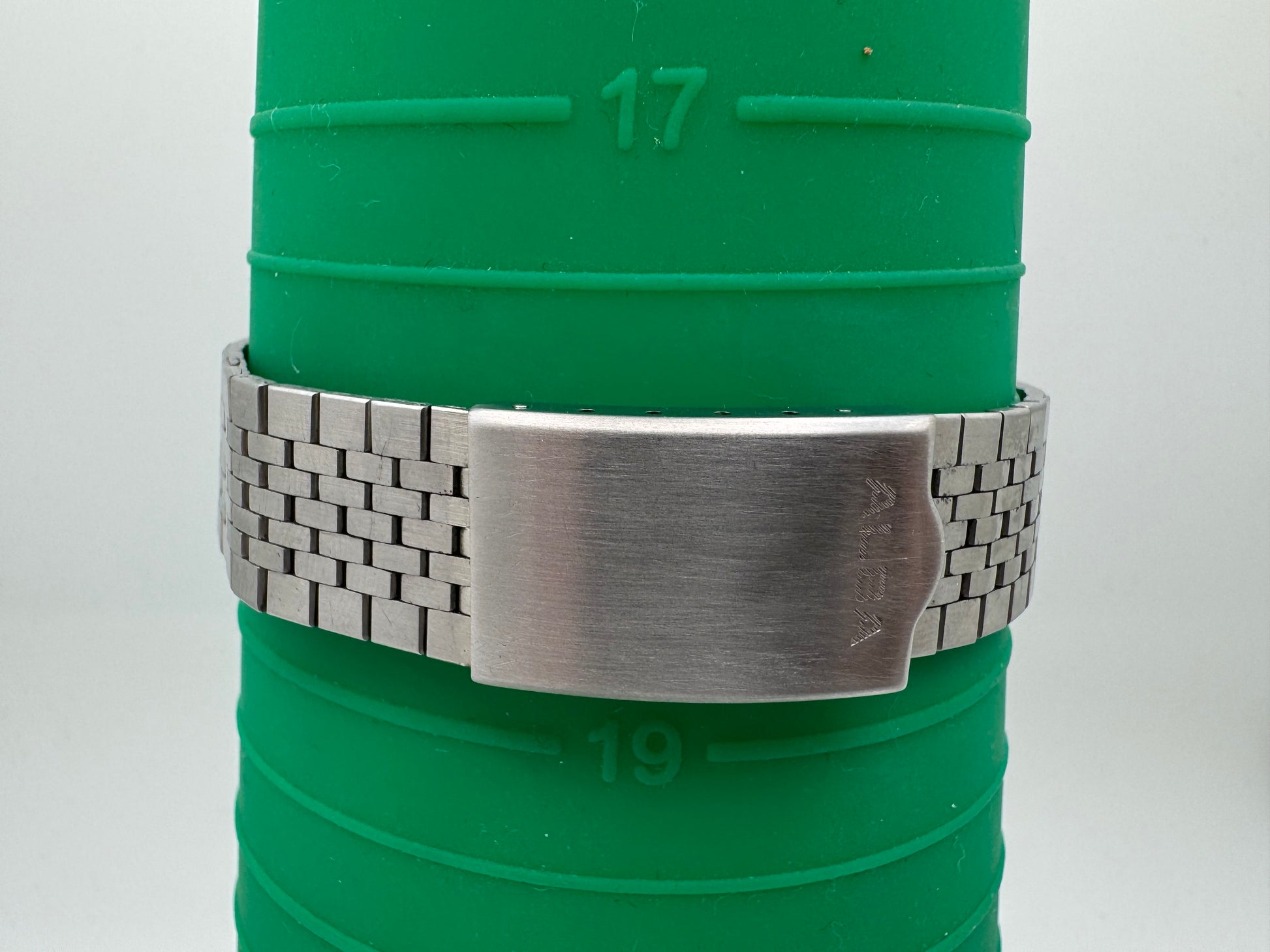 Die Uhr befindet sich in stark gebrauchtem, aber voll funktionsfähigem Zustand und besitzt das originale ALBA-Edelstahlarmband.