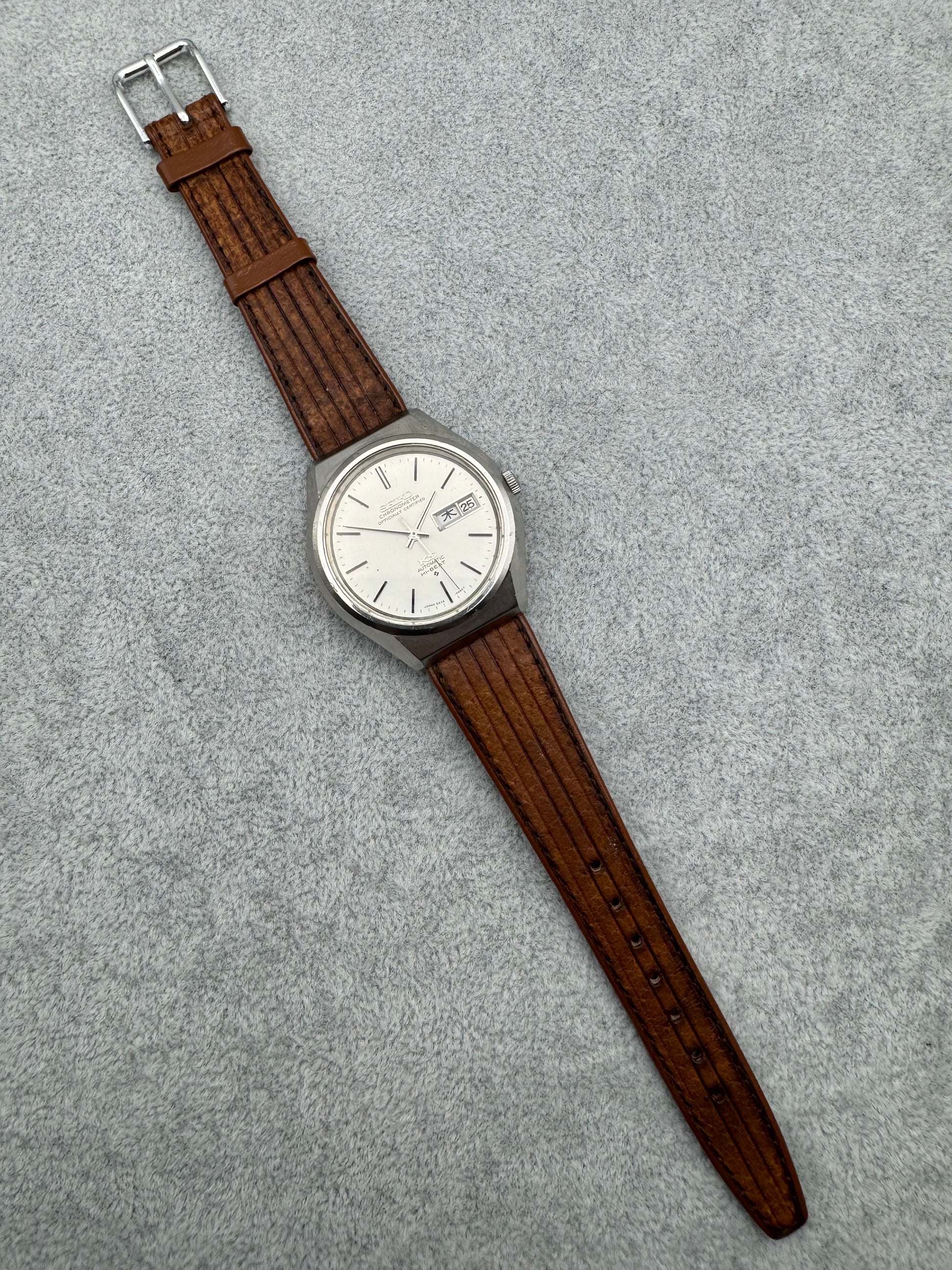 Seltene und historisch bedeutende King Seiko Chronometer aus der späten Phase der Suwa-Seikosha-Produktion, Referenz 5606-8061, ausgestattet mit einem offiziell zertifizierten Chronometer-Kaliber 5606A. Diese Modelle markierten den Höhepunkt der Seiko-Präzisionsfertigung der 1970er-Jahre – eine Zeit, in der Seiko international mit Schweizer Chronometern konkurrierte und durch die Grand Seiko- und King Seiko-Linien Maßstäbe setzte.