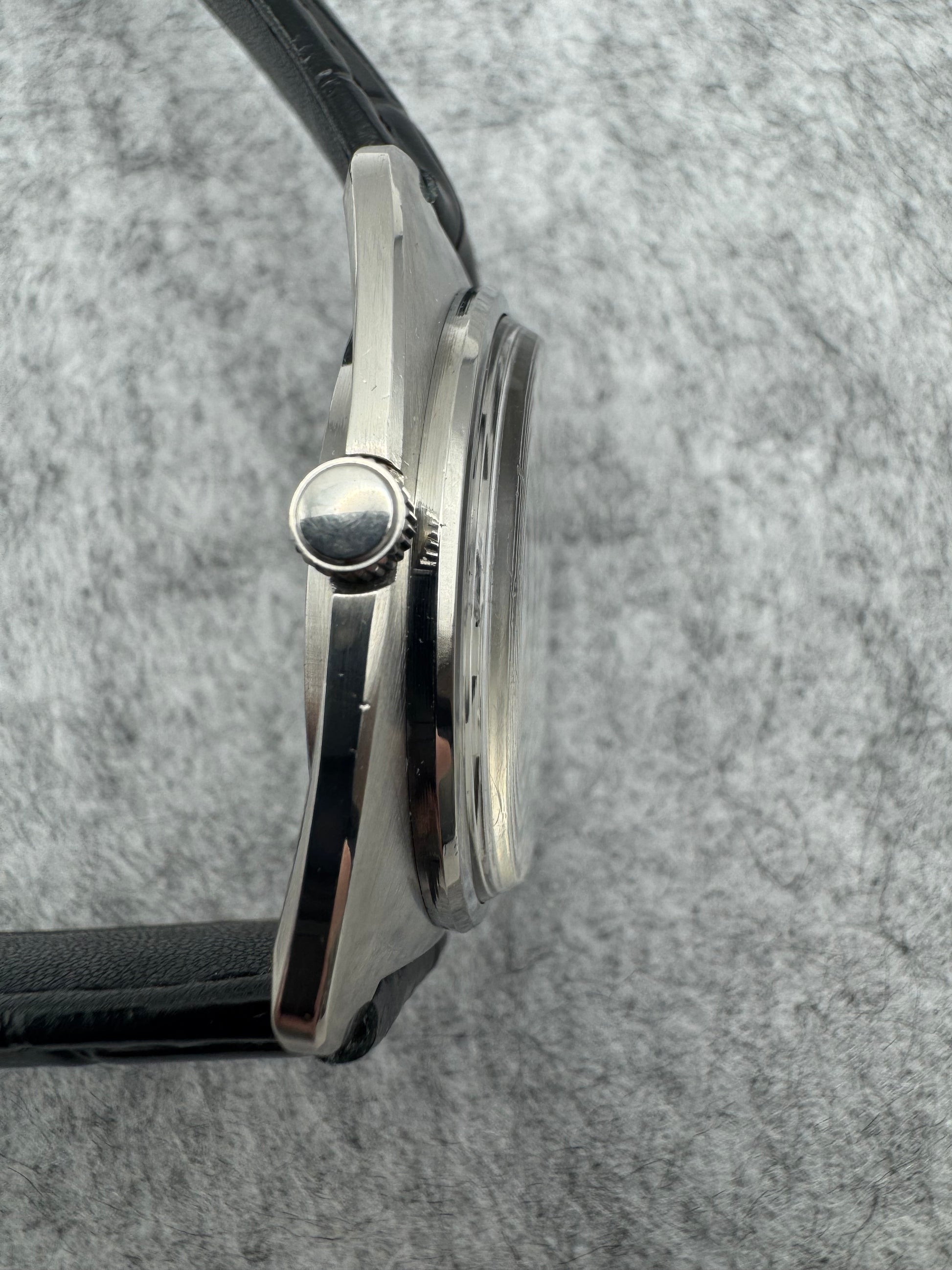 Technisch und optisch in hervorragendem Zustand. Werk wurde vollständig revidiert, gereinigt, geölt und reguliert. Glas und Zifferblatt in sehr schöner Erhaltung, Gehäuse mit nur minimalen Tragespuren. Neues Lederband (Schnellwechsel).