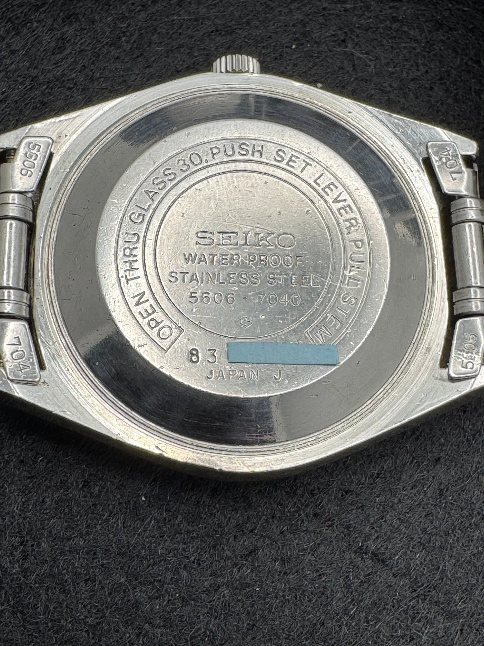 Uhren wie diese frühe 5606-7040 waren im japanischen Markt hoch angesehen und galten als Ausdruck technischer Reife. Sie vereinten Zuverlässigkeit, Wartungsfreundlichkeit und schlichte Eleganz – Qualitäten, die sie bis heute bei Sammlern so beliebt machen.