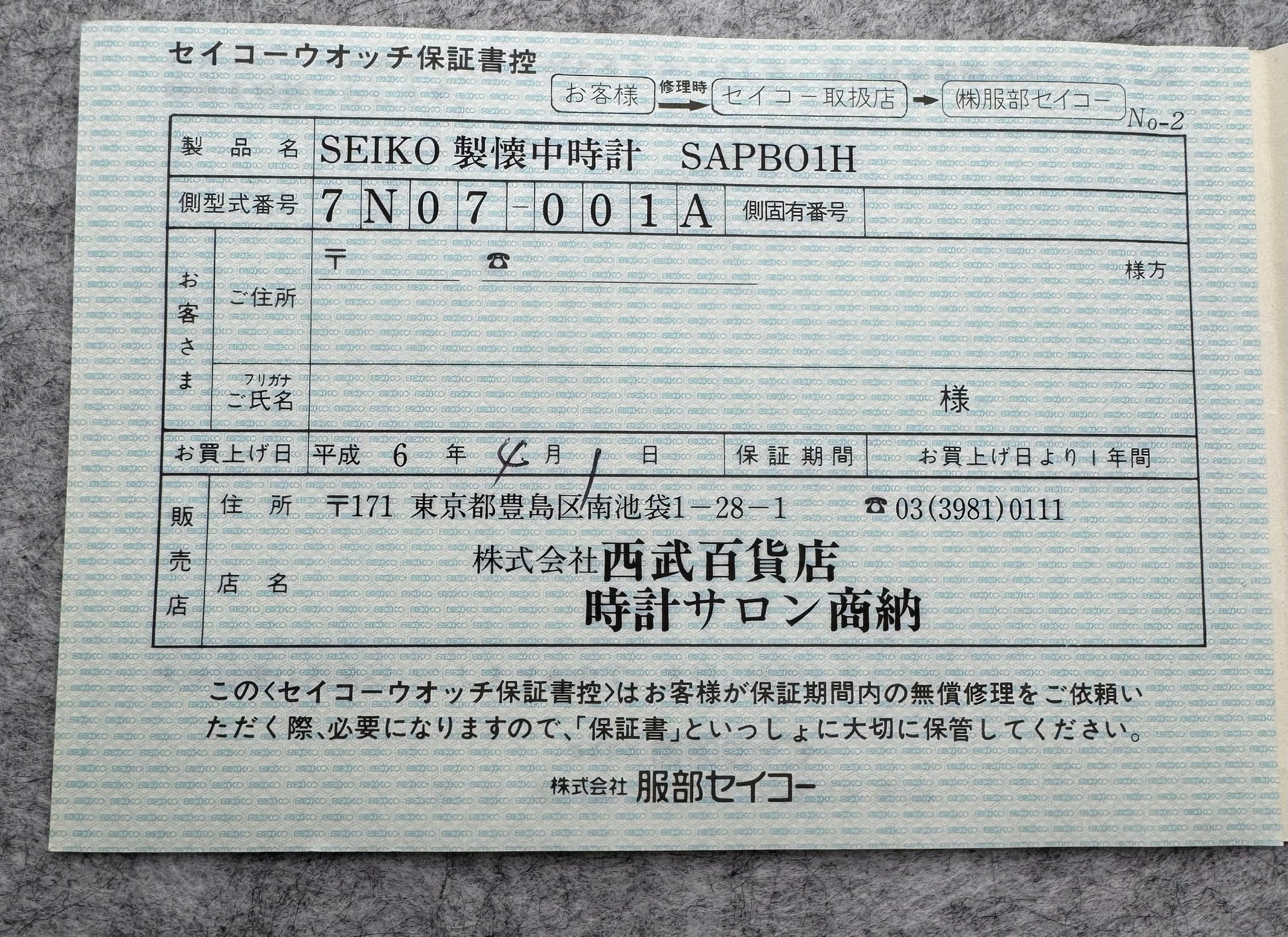 - Originale Garantiekarte (ausgestellt 1994 bei Seibu Department Store, Tokio)