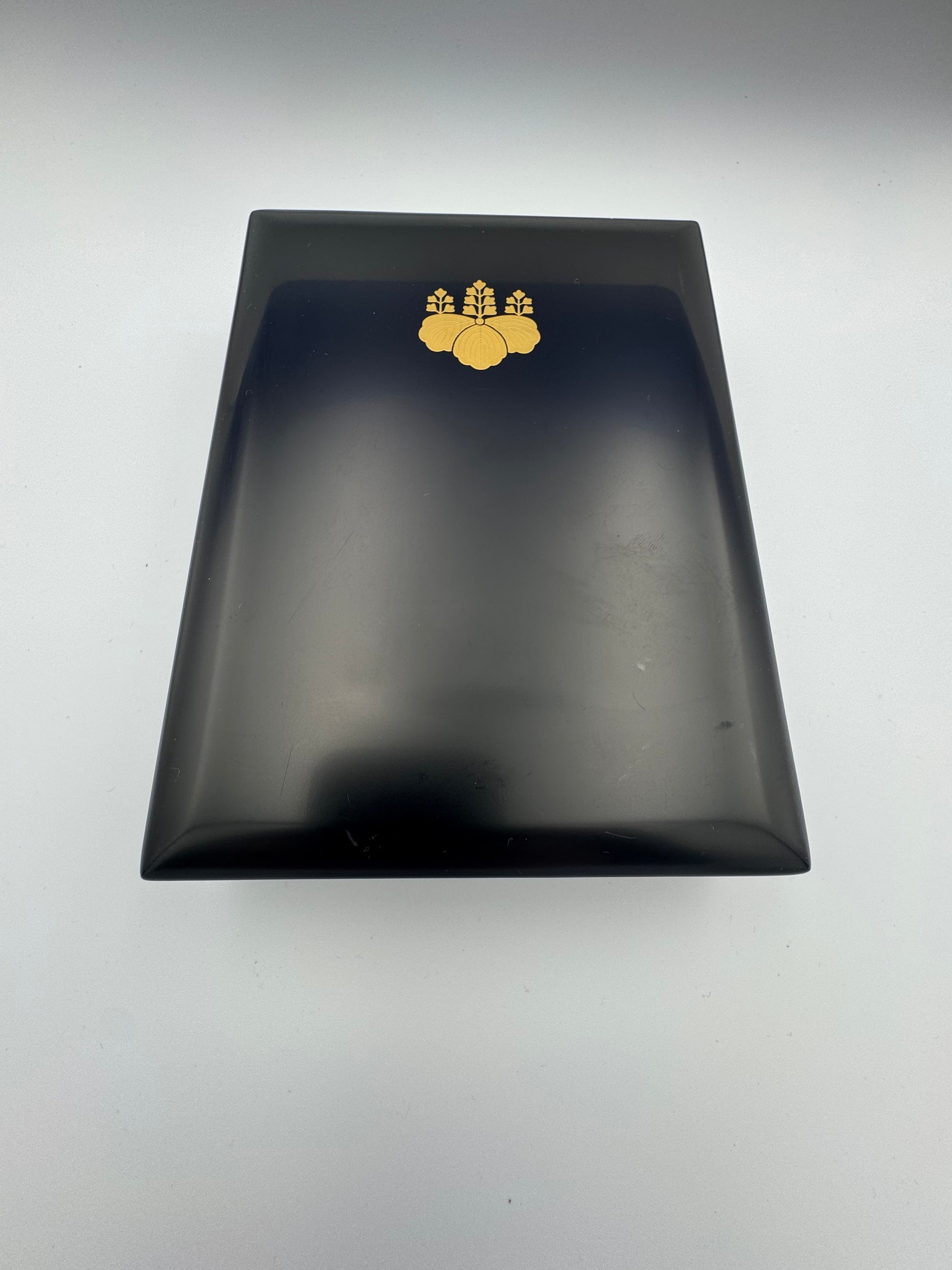 Die Box ist mit Urushi-Lack („漆塗り“) überzogen, einer traditionellen japanischen Lacktechnik, die durch ihren tiefen Glanz und ihre außergewöhnliche Haltbarkeit besticht.