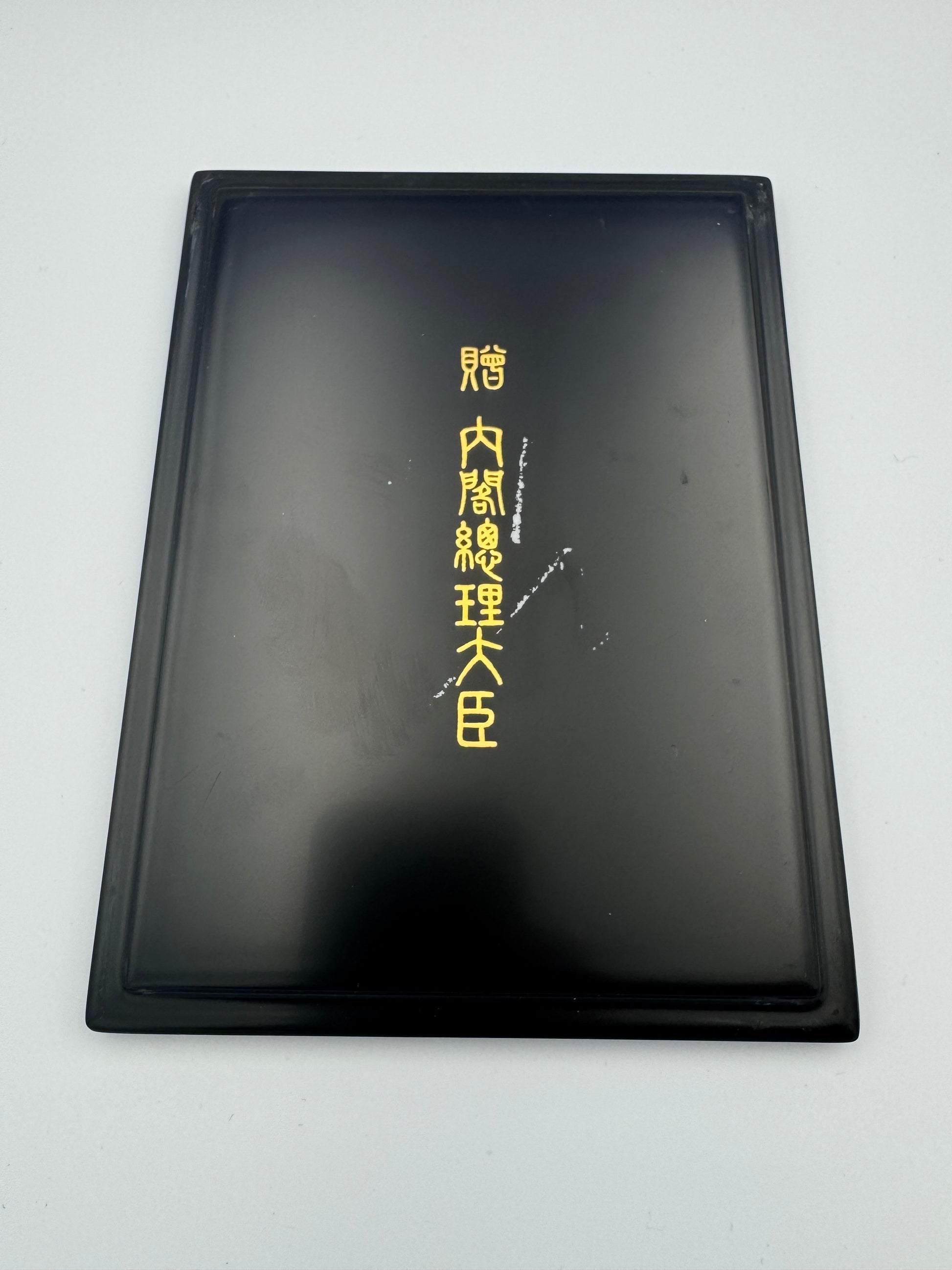 - Deckelgravur: Japanisches Regierungswappen (Kiri-Mon) mit Inschrift