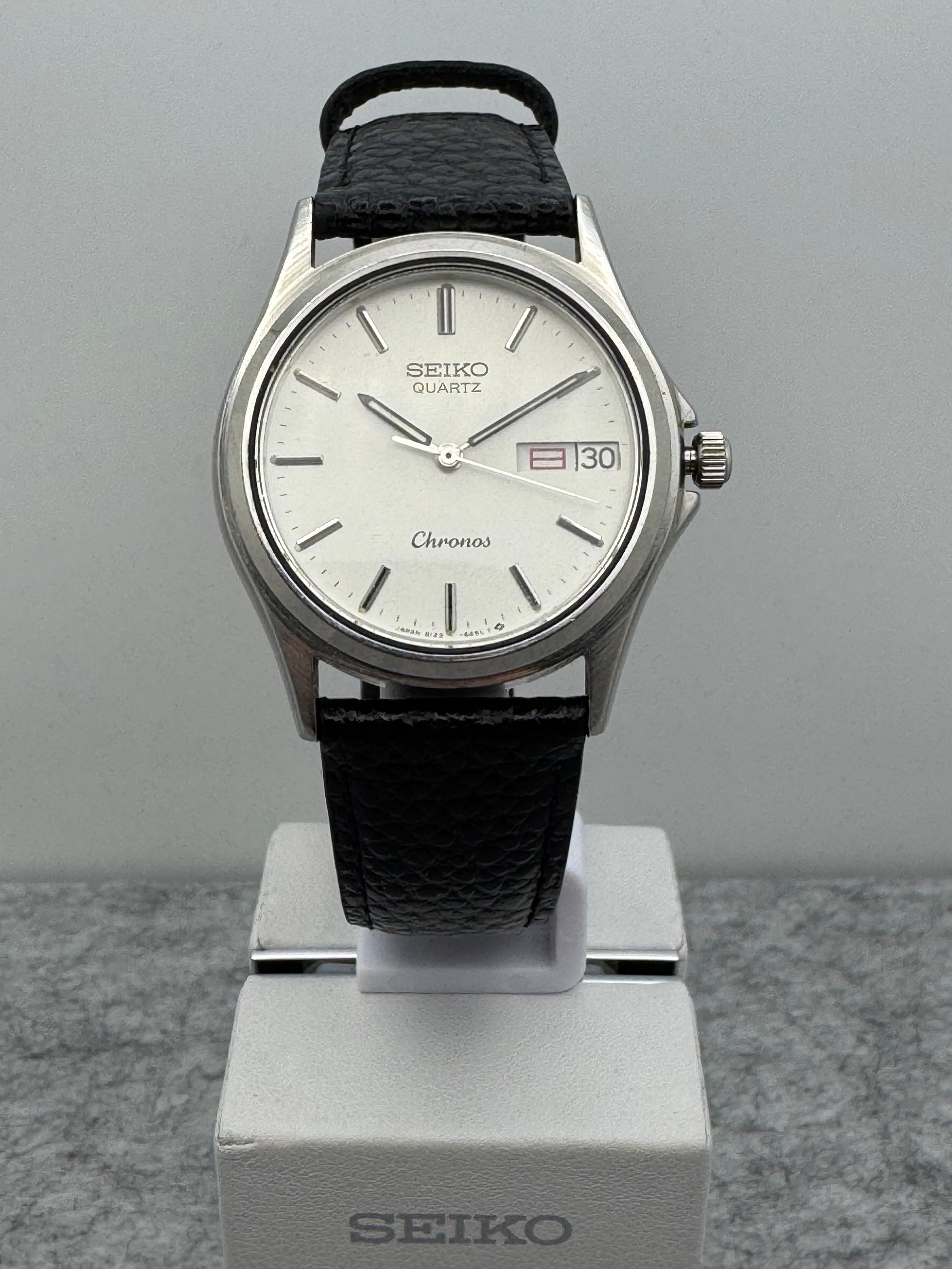 Nach der bahnbrechenden Einführung der Seiko Quartz Astron (1969) setzte Seiko in den 1980er-Jahren neue Maßstäbe in der Serienfertigung präziser Quarzuhren. Modelle wie die Chronos kombinierten höchste Zuverlässigkeit mit einer Ästhetik, die sich an der klassischen Linienführung der mechanischen Seikos orientierte – eine Brücke zwischen Tradition und moderner Technologie.